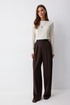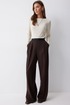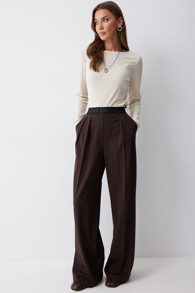 Брюки прямого силуэта из костюмной ткани. По верху брюк декоративная резинка. На передних половинках карманы и декоративные складки. На задних половинках вытачки. Обращаем ваше внимание, что фурнитура может отличаться от фото.