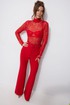 Брюки прилегающего силуэта расширенные книзу из костюмной ткани. По верху притачной пояс с застежкой на петлю и пуговицу и шлевками для ремня. На передних половинках обработана застежка молния в среднем шве. В комплект входит съемный ремень. Обращаем ваше внимание, что фурнитура может отличаться от фото.