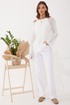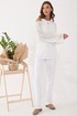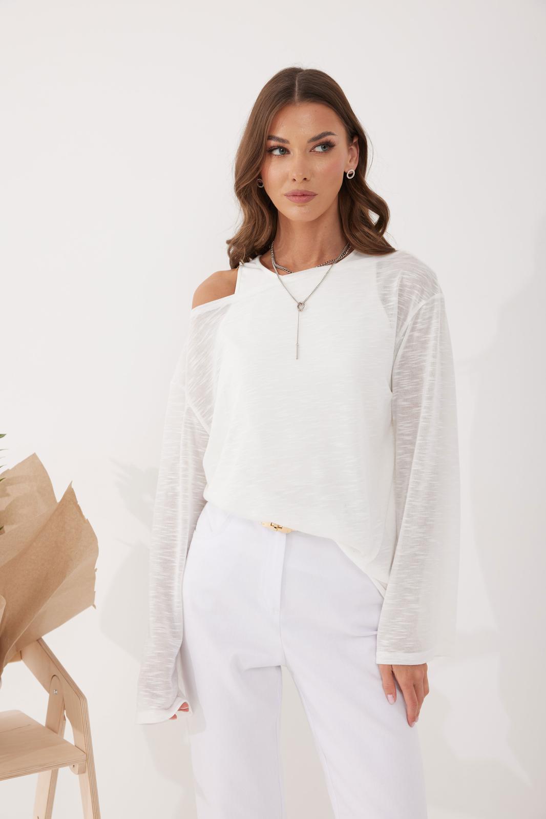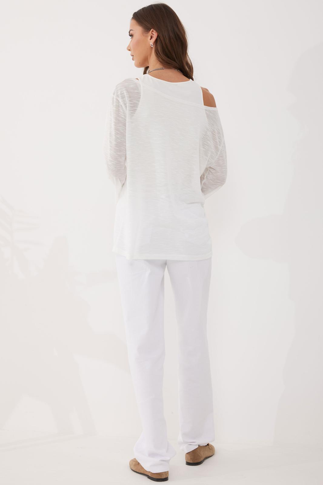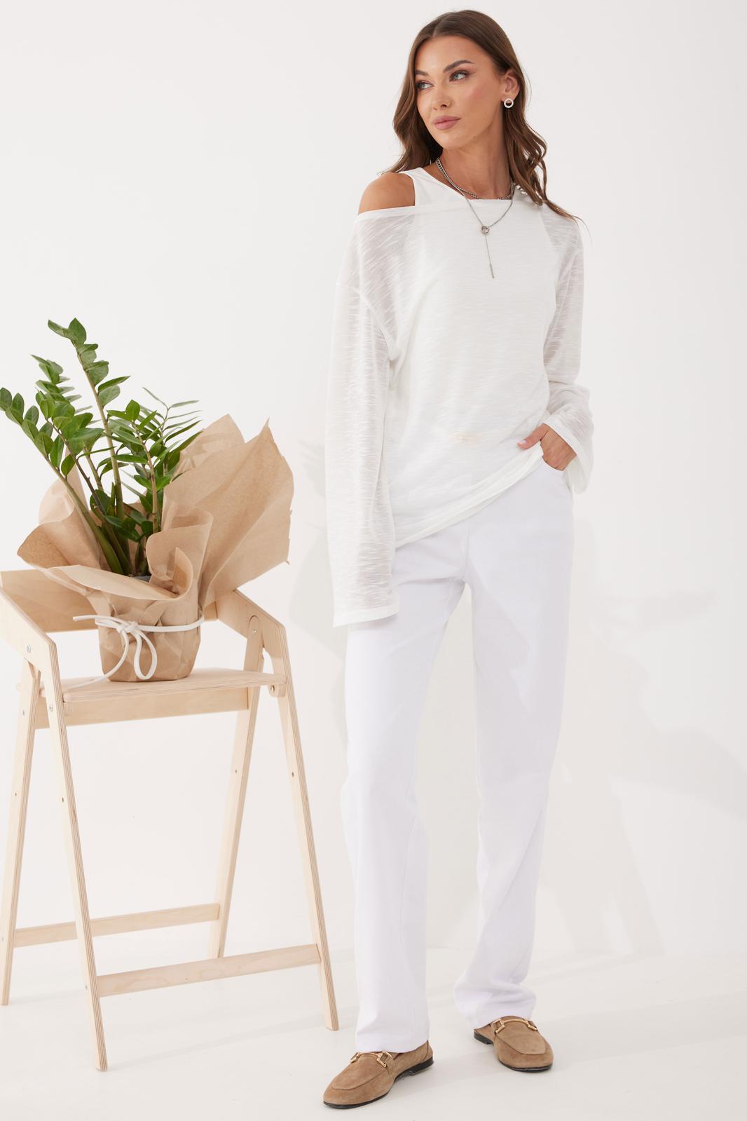 Джемпер прямого силуэта из трикотажного полотна. Горловина-лодочка. Рукав со спущенной линией плеча, удлиненный. В комплект входит нижняя майка.