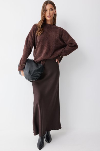 Джемпер прямого силуэта из трикотажного полотна. Горловина округлая. Рукав со спущенной линией плеча.