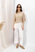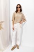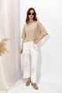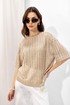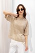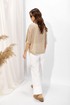 Джемпер прямого силуэта из трикотажного полотна. Горловина округлая. Рукав со спущенной линией плеча длиной до локтя.
