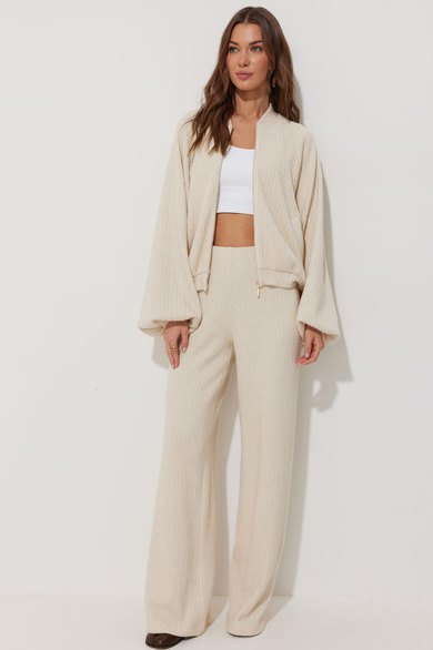Брюки прямого силуэта из комфортного трикотажного полотна. По верху брюк резинка.
