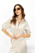 Джемпер прямого силуэта из трикотажного полотна. Воротник-стойка с застежкой по центру на молнию. Рукав реглан с притачной планкой, на которой выполнены декоративные защипы. По низу рукава манжета. По низу джемпера притачной пояс.