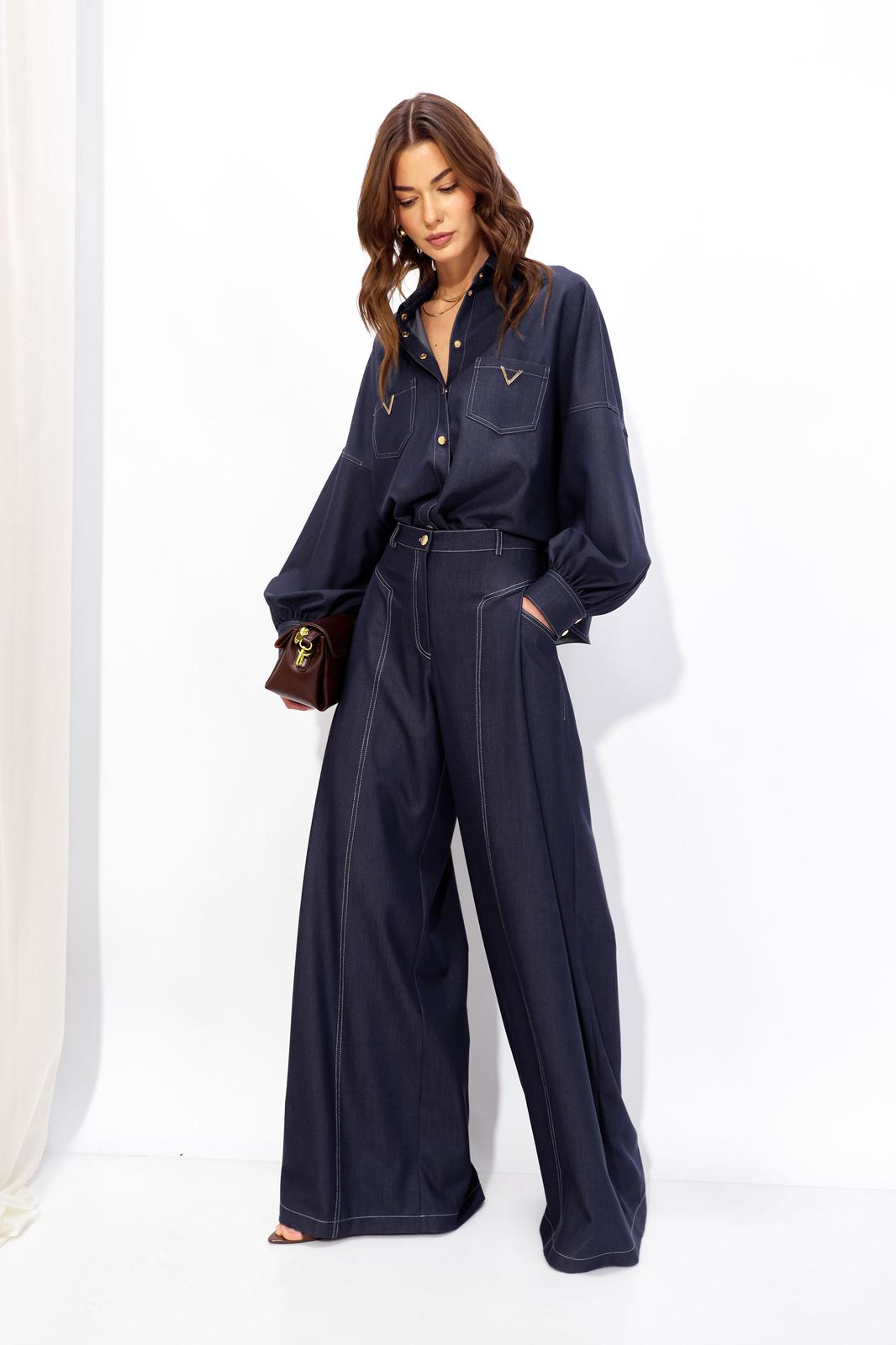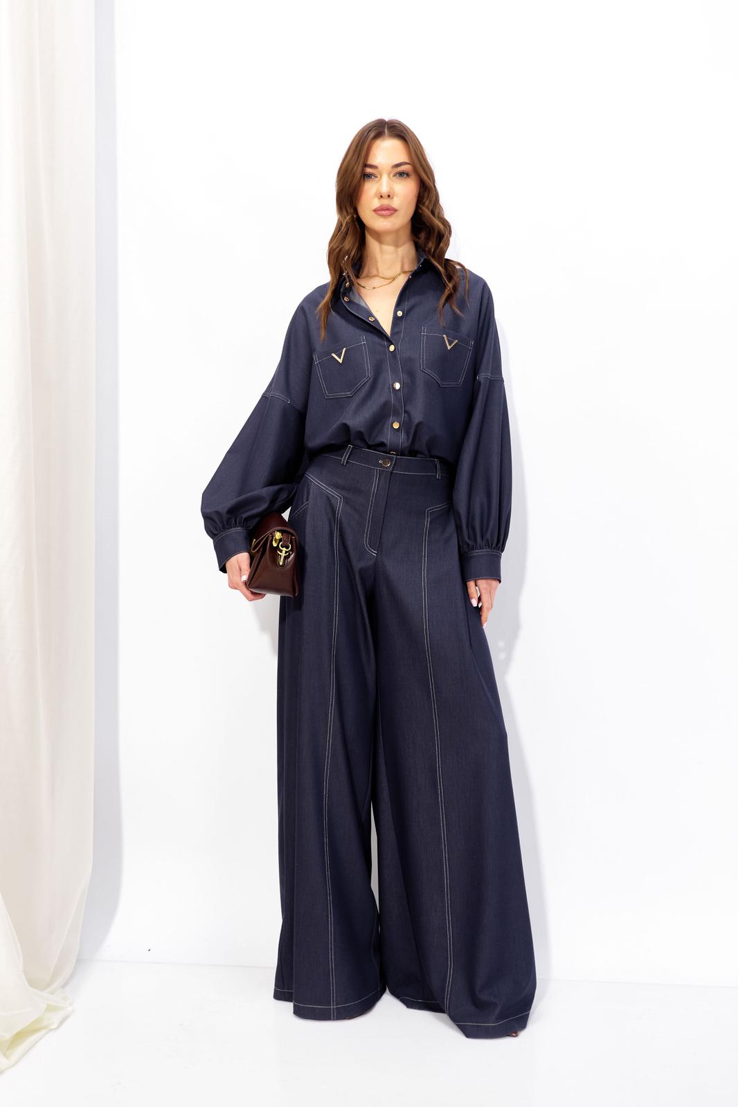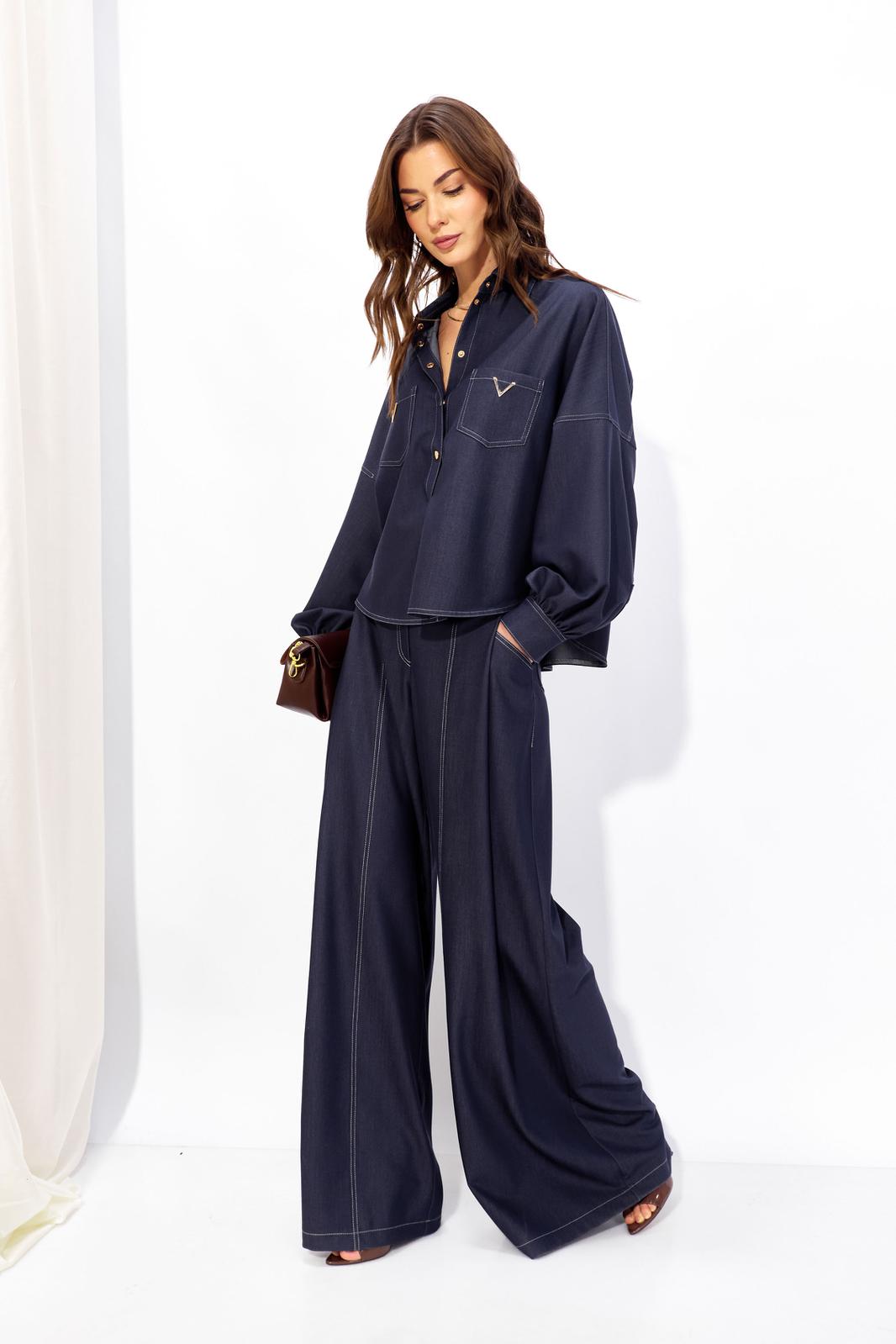 Костюм состоящий из блузки и брюк.