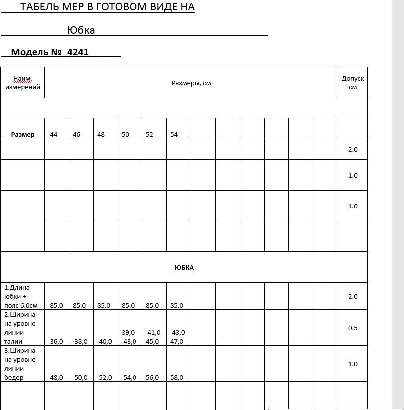 Длина юбки (85см+6см пояс)