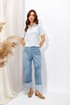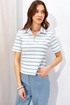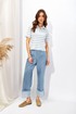 Джемпер полуприлегающего силуэта из трикотажного полотна в полоску. Воротник стояче-отложной, по центру застежка на петли и пуговицы. Рукав втачной, одношовный, выше линии локтя. Обращаем ваше внимание, что фурнитура может отличаться от фото.