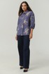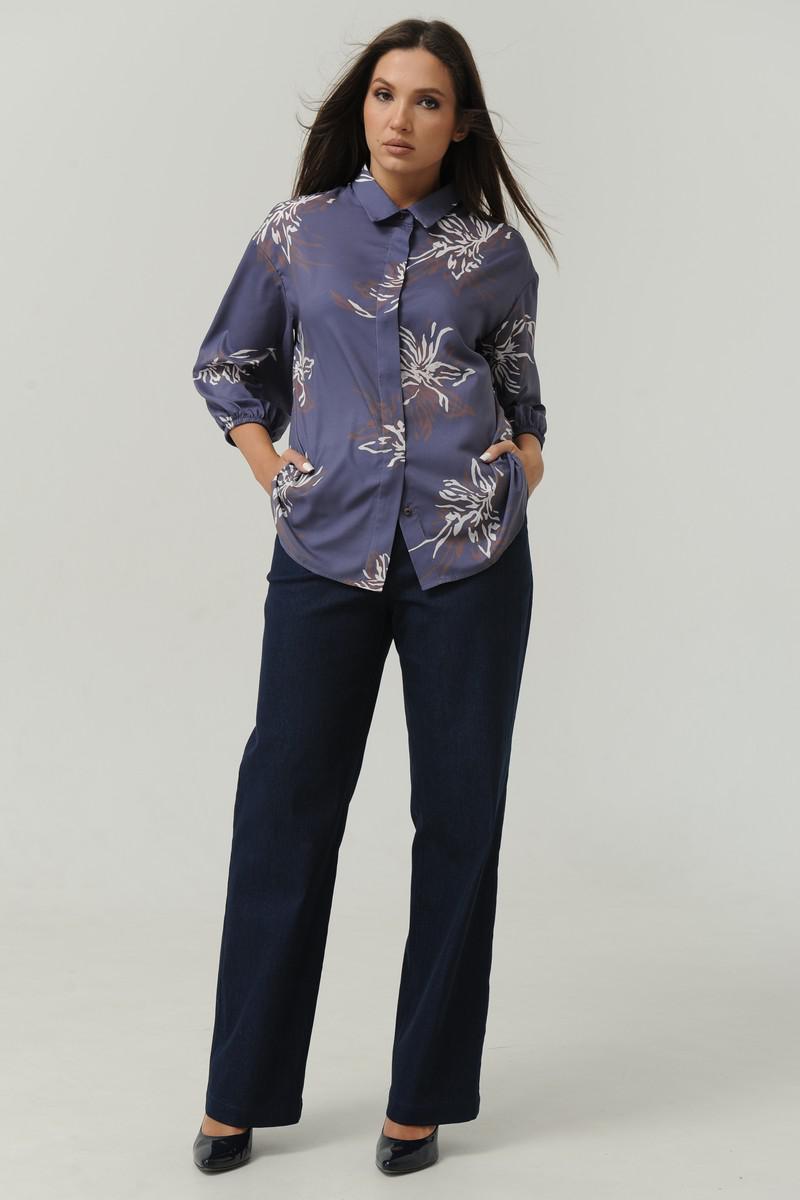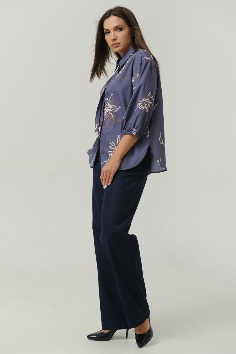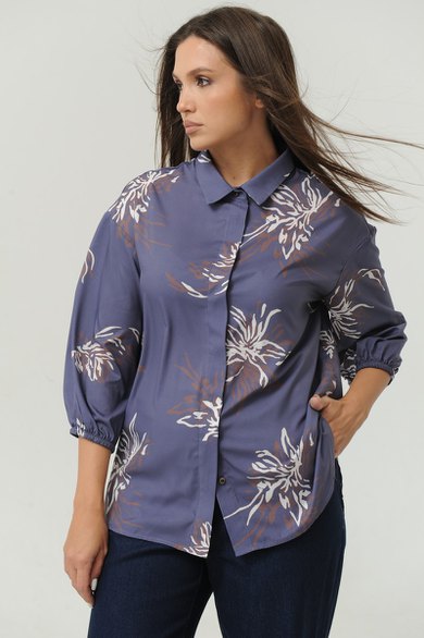 Рубашка Ma Сhérie прямого силуэта. Воротник на отложной на стойке. Застежка центральная потайная на петли и пуговицы, спинка с кокеткой. Рукав 3/4 со спущеной линией плеча, одношовный, снизу собран на резинку.