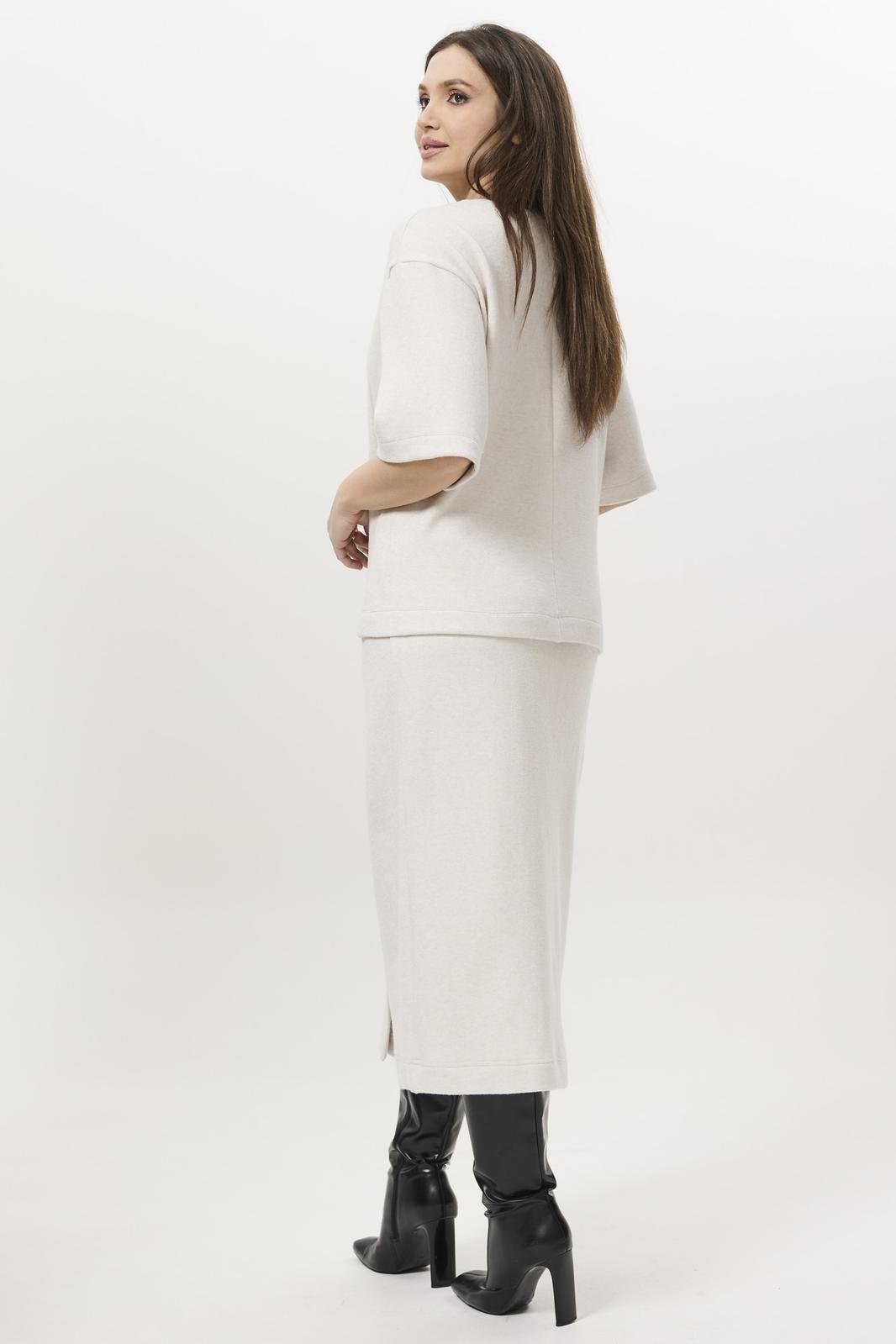 Костюм можно одеть как на торжественное мероприятие, так и для повседневного использования. Джемпер и юбку можно приобрести раздельно. Модели 1122 и 2075 соответственно.