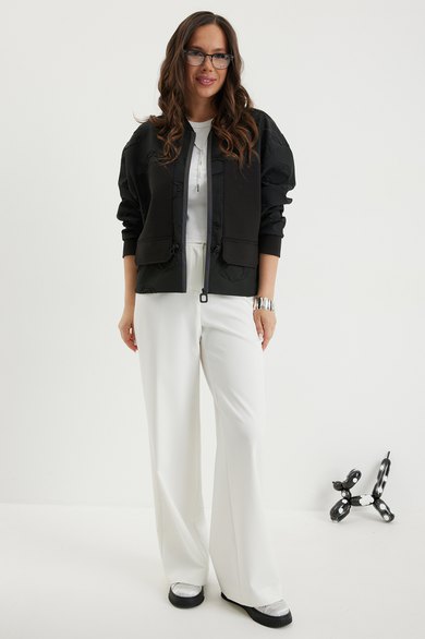 - Тип ткани: Бомбер: пэ 62%, вискоза 36%, эластан 2%, брюки: пэ 50%, вискоза 48%, эластан 2%