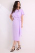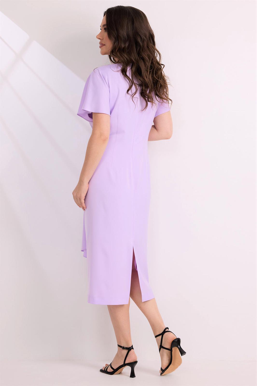 Нарядное элегантное платье приталенного силуэта с цельнокроеным коротким рукавом. Выполнено из шелковистой ткани средней плотности с атласным блеском. По спинке застёжка на потайную молнию, снизу разрез. Платье на тонкой трикотажной подкладке. Спереди по платью декоративная отлетная деталь, придающая платью неповторимый шарм и нарядность.