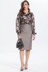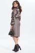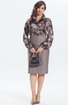 Комплект, состоящий из блузки и юбки. Блузка прямого силуэта на центральной застежке на петли и пуговицы. Перед с нагрудными вытачками от боковых швов. Спинка цельнокроеная. Рукав втачной одношовный длинный по низу со сборкой и на манжете, застегивающемся на петлю и пуговицу. Горловина на стойке с воротником, который застегивается на петлю и пуговицу. Юбка женская прямая зауженная книзу на обтачке. Перед с четырьмя талиевыми вытачками, заднее полотнище с четырьмя талиевыми выточками и средним швом, вверху которого выполнена потайная молния, внизу шлица. Юбка на подкладке.