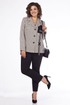 Костюм женский 2-х предметный из поливискозной ткани, состоящий из жакета и брюк. Жакет прямого силуэта с однобортной застежкой на петли-пуговицы с воротником пиджачного типа. Перед с нагрудными вытачками,на левой полочке на уровне груди накладной карман с декоративной тесьмой и шлевками. На правой полочке декоративный бочок из отделочной ткани. В боковых выполнены разрезы. Брюки прямого силуэта, на притачном поясе,по спинке вставлена резинка. В боковых швах выполнены карманы, застежка молния.