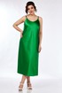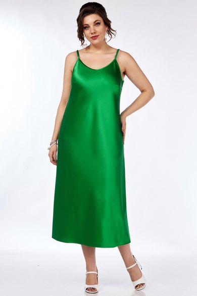 Платье полуприлегающего силуэта, из плотной атласной ткани. Длина миди, с нагрудными вытачками из боковых швов и с округлым вырезом горловины по переду и спинке, на тонких регулирующихся бретелях