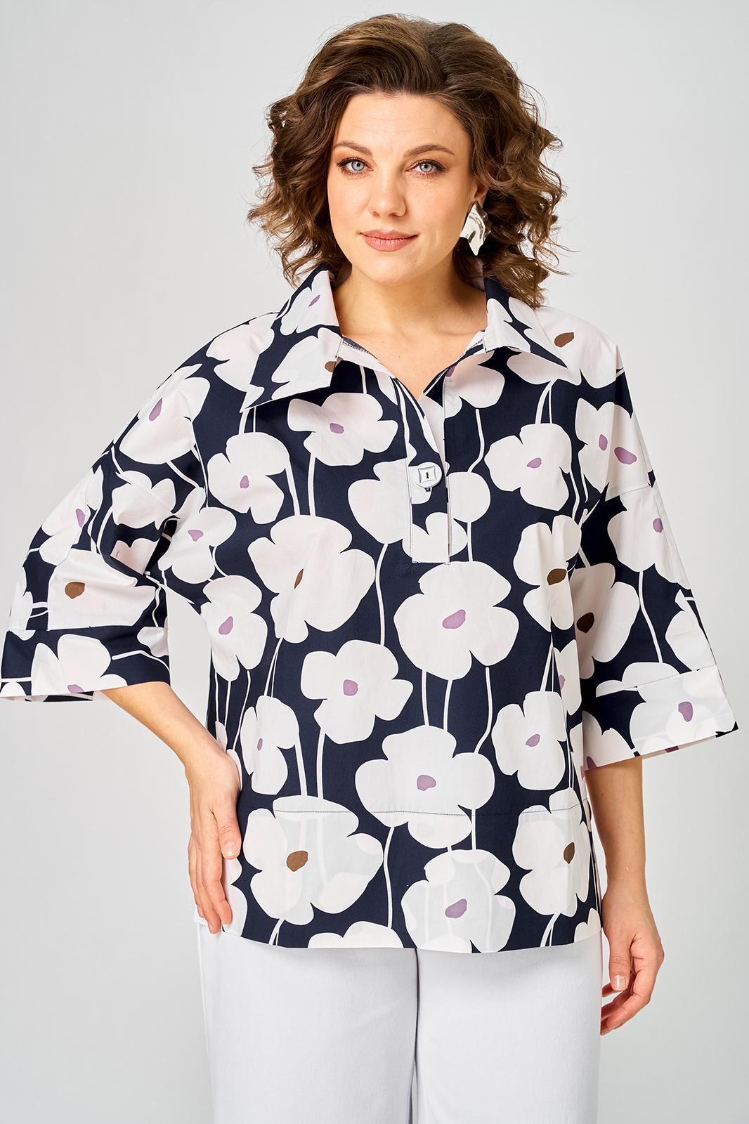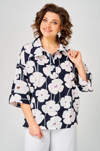 ◾В декоративных целях на левом боку переда размещен настрочный цветочный элемент из сетки, который придает блузке особый шарм и уникальность.