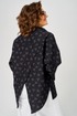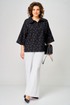 Женская хлопковая блуза в стиле «бохо» прекрасно вольется в повседневную жизнь и станет одной из любимых базовых вещей в Вашем гардеробе. Блуза свободного кроя. Перед цельный с планкой-застежкой до груди. Спинка с плечевой кокеткой, переходящей в рукав. Рукав 3/4 с притачной манжетой по низу. Из-под кокетки спинки — запах из двух нижних деталей блузы, фигурный низ, по бокам изделия разрезы. По низу переда широкая подгибка. Декорирована блуза настрочным цветком из сетки. Изделие хорошо сочетается как с брюками, так и с юбками, с классической и спортивной обувью. Длина изделия по спинке 74 (+/- 1 см). Длина рукава от горловины 55 (+/- 1 см).