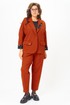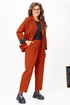 Костюм, который подчеркивает вашу уверенность и женственность. Плотный трикотаж с добавлением нейлона делает его пластичным и износостойким — он держит форму и смотрится дорого в любой ситуации. Богатый карамельный оттенок словно создан, чтобы добавить тепла и выразительности в повседневность, а изящная отделка текстилем и контрастные детали на лацкане и манжетах превращают образ в по-настоящему уникальный.