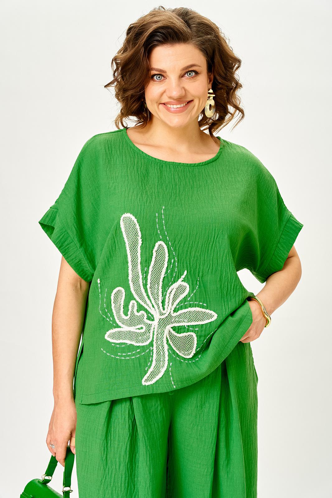Топ свободного силуэта не сковывает движения и украшен выразительной вышивкой, которая делает образ акцентным и запоминающимся.