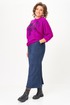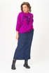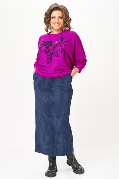 Этот элегантный и модный комплект станет ярким акцентом в вашем гардеробе! Комплект включает в себя яркий пурпурный джемпер с рукавами реглан «летучая мышь» и изящную юбку в темно-синих тонах, выполненную из мягкого, приятного к телу вельвета.