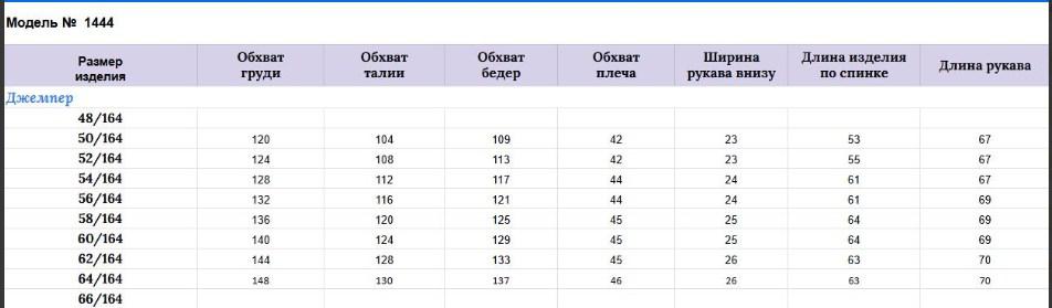 Длина джемпера по спинке 60 см +/- 2 см, длина рукава 68 см +\- 1 см, длина юбки по боковому шву 95 см.