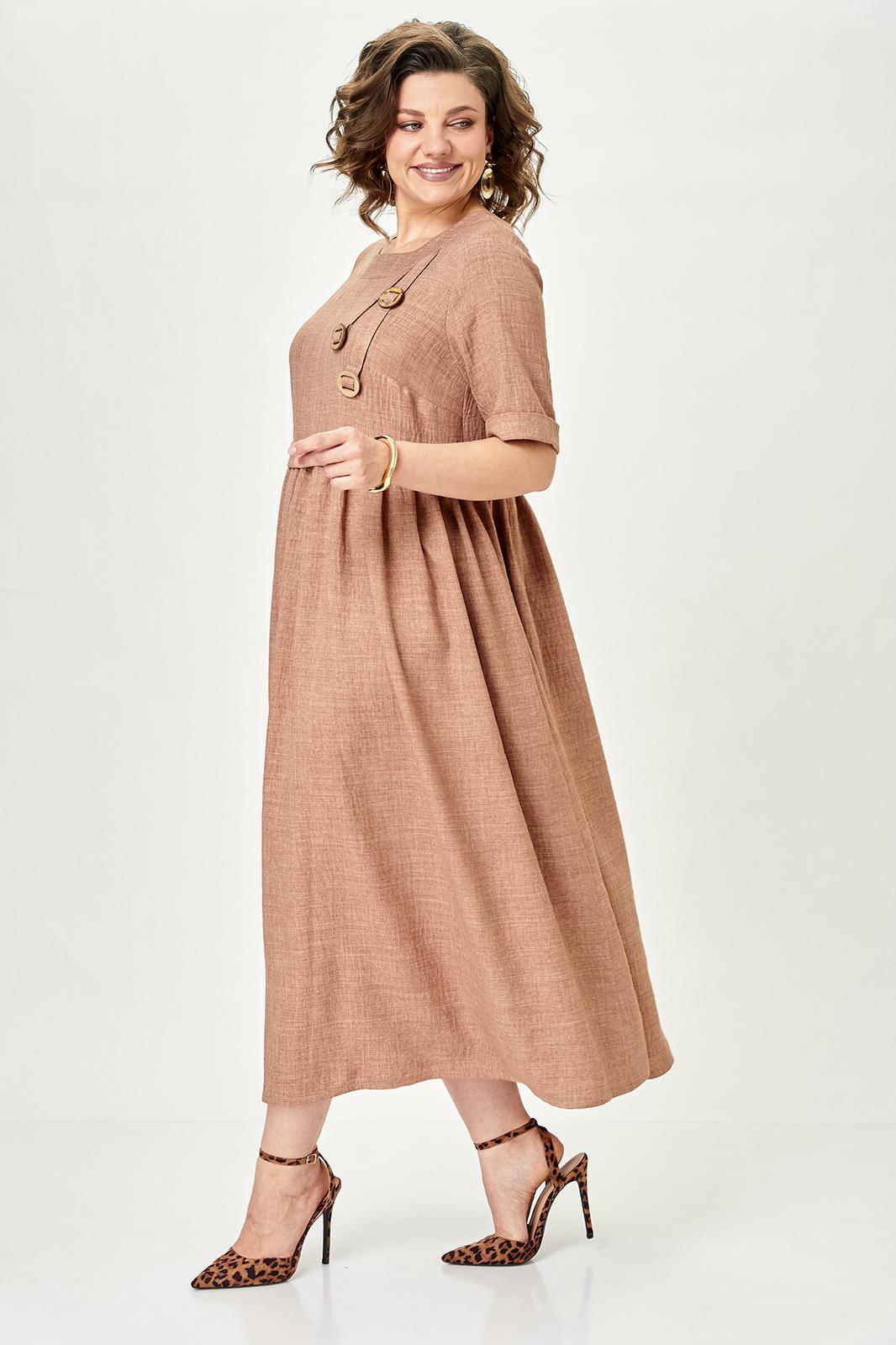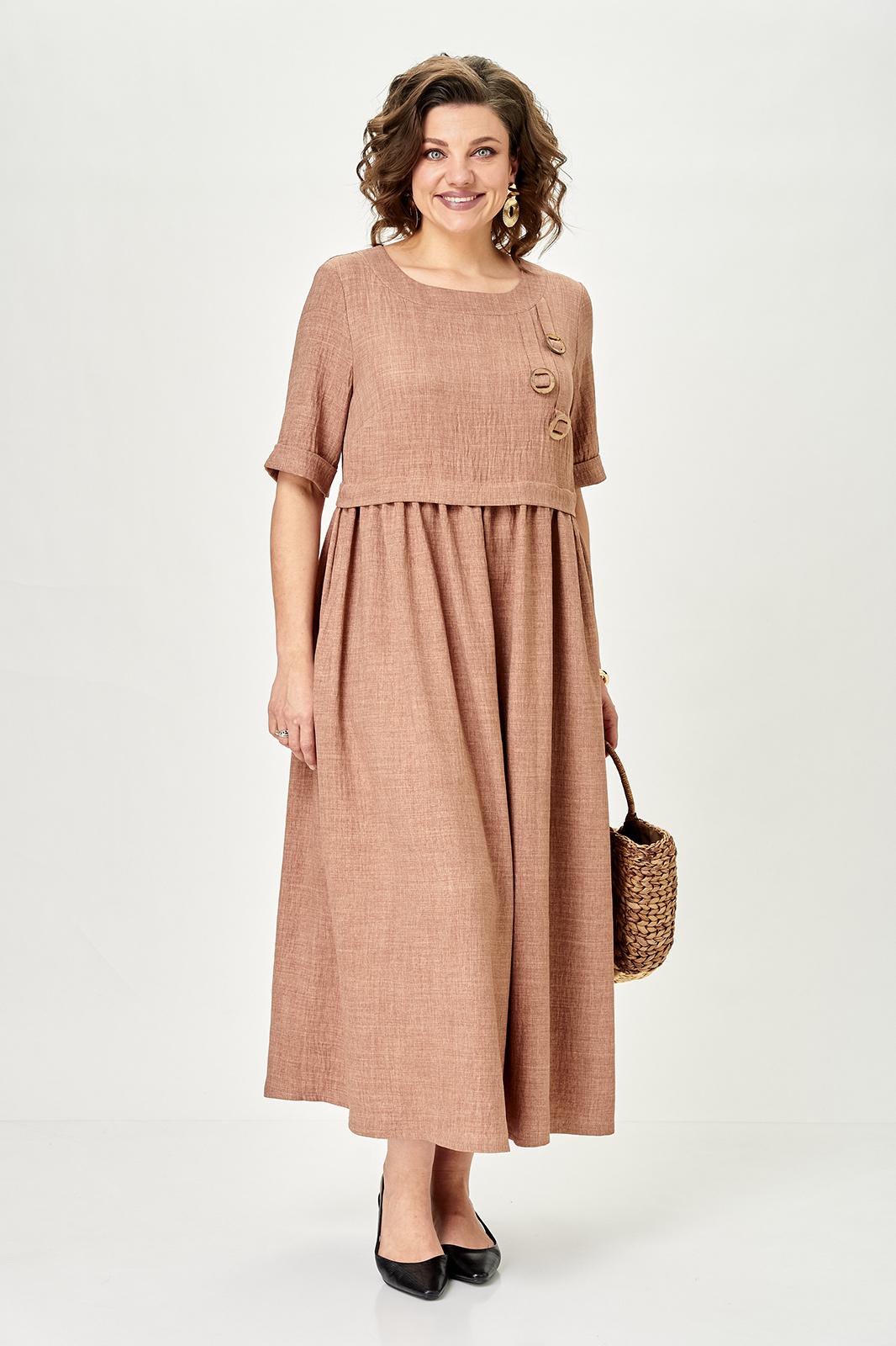 Это длинное платье свободного кроя, выполненное из легкого полиэстера. Идеальное решение для межсезонья — оно сочетает комфорт и элегантность. Миндальный оттенок придает образу спокойствие и утонченную свежесть, создавая нежный и стильный лук.