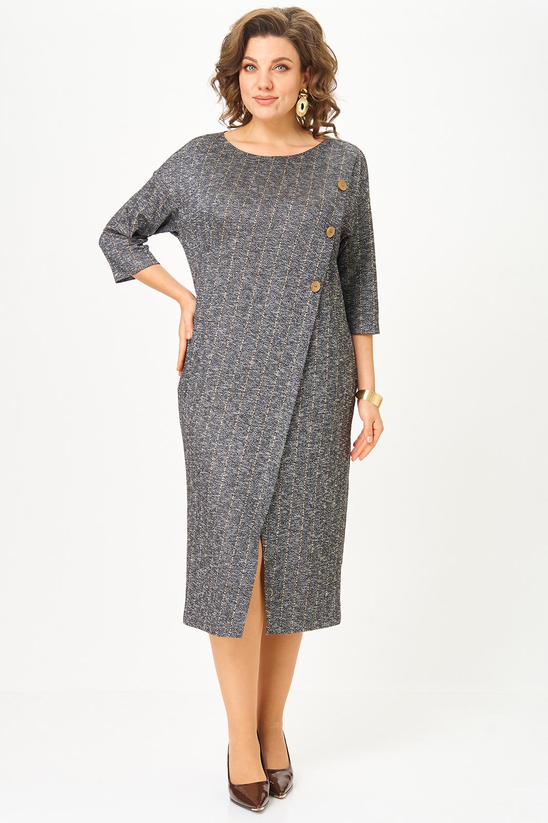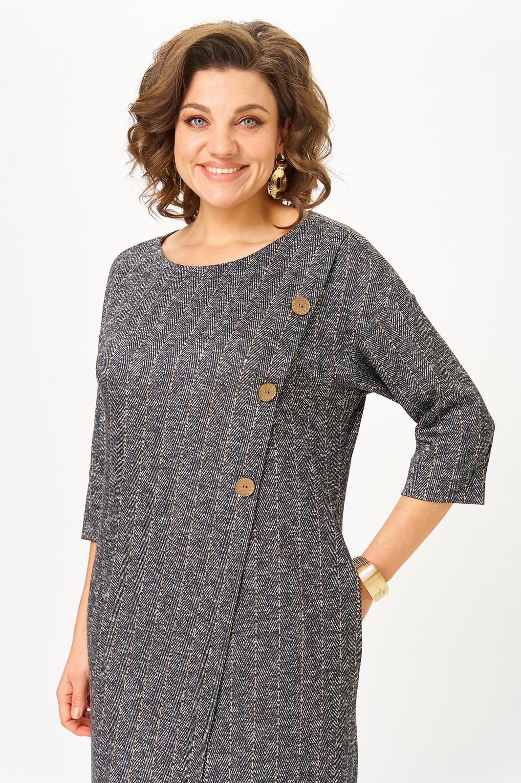 А имитация асимметричной застёжки с декоративными пуговицами добавляет изюминку и визуально вытягивает фигуру.