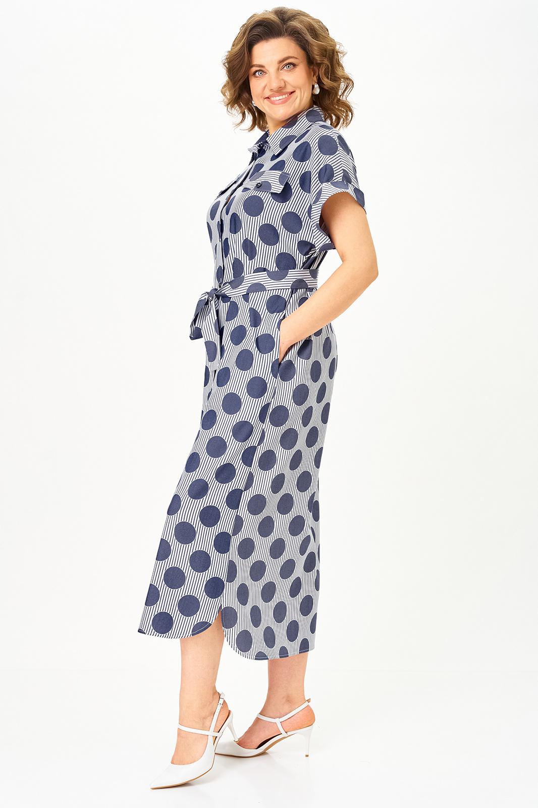 Платье-рубашка с актуальным принтом «полоска и горох» из тонкого денима — must-have сезона, который сразу собирает образ. Универсальная модель, свободная, с поясом, оверсайз, плюс сайз в которой не нужно думать, с чем сочетать — она уже работает за вас.