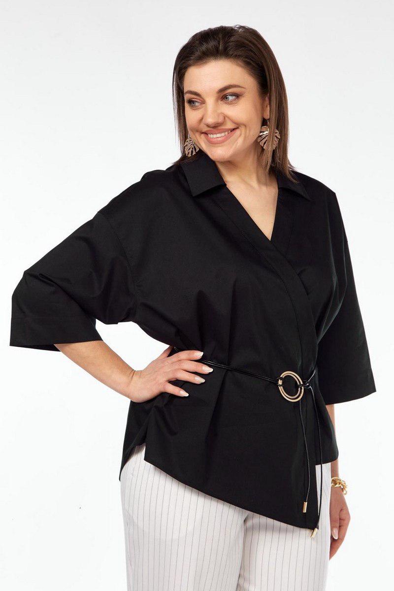 Рубашка на запах, горловина с отпашным воротником, борт оформлен притачной планкой. Рукав спущенный ¾.