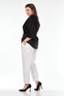 Брюки зауженные к низу, на поясе с центральной застежкой на гульфик и тесьму молнию и петлю и пуговицу, по бокам пояс присборен на резинку.