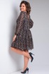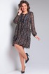 Платье женское свободного силуэта. Округлый вырез горловины, на завязках. Рукав втачной, со сборкой, по низу-на резинке. Изделие с подрезами, со сборкой. По спинке-декоративный вырез с кружевом. Нижний валан платье выполнен из сетки с кружевом. Длина по спинке-93см, длина рукава-63см