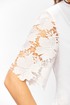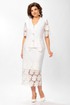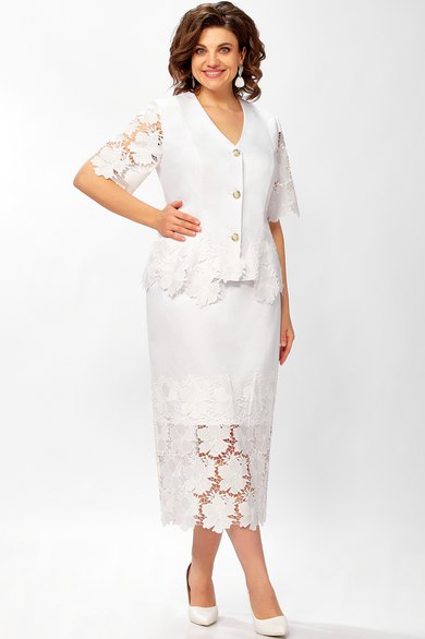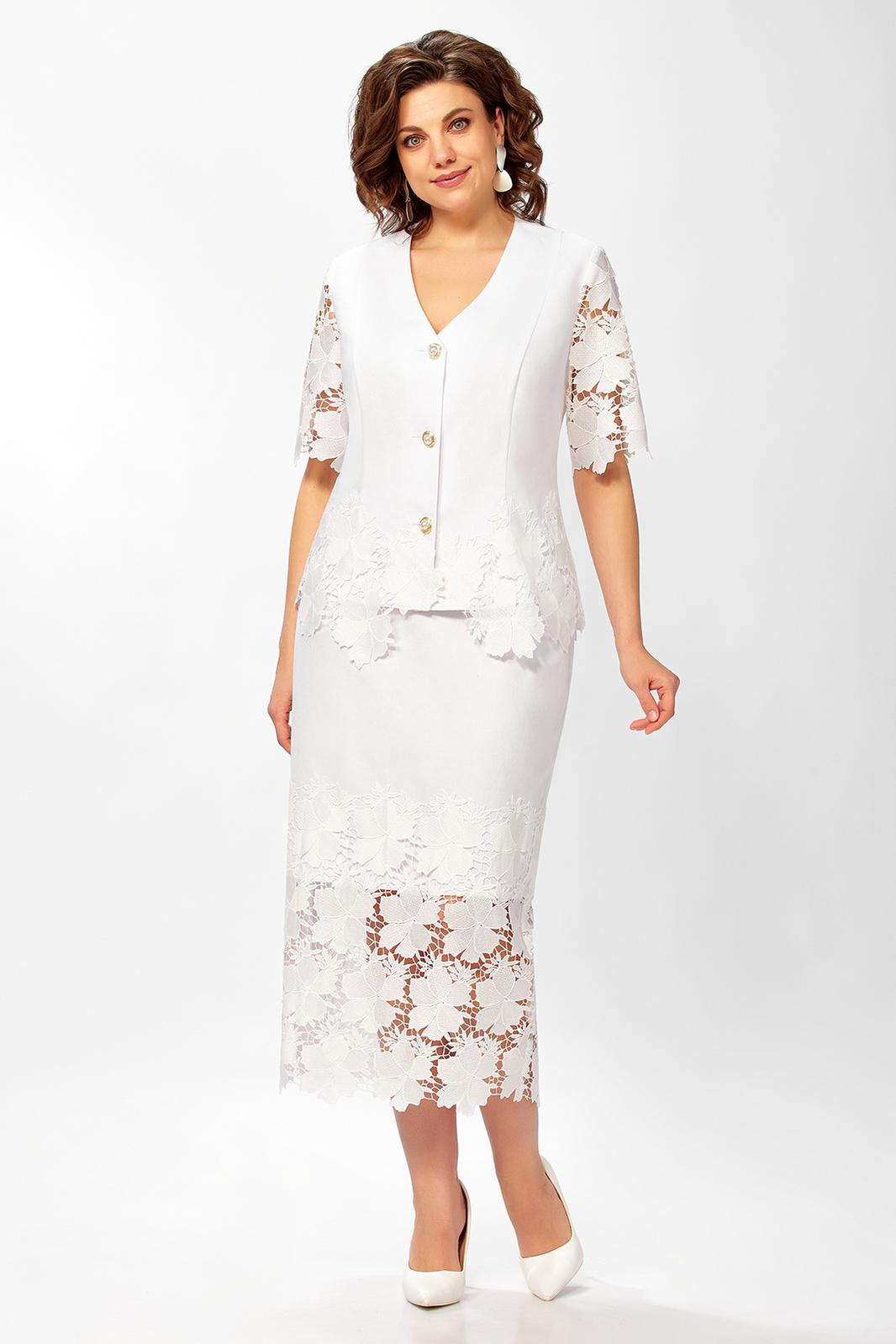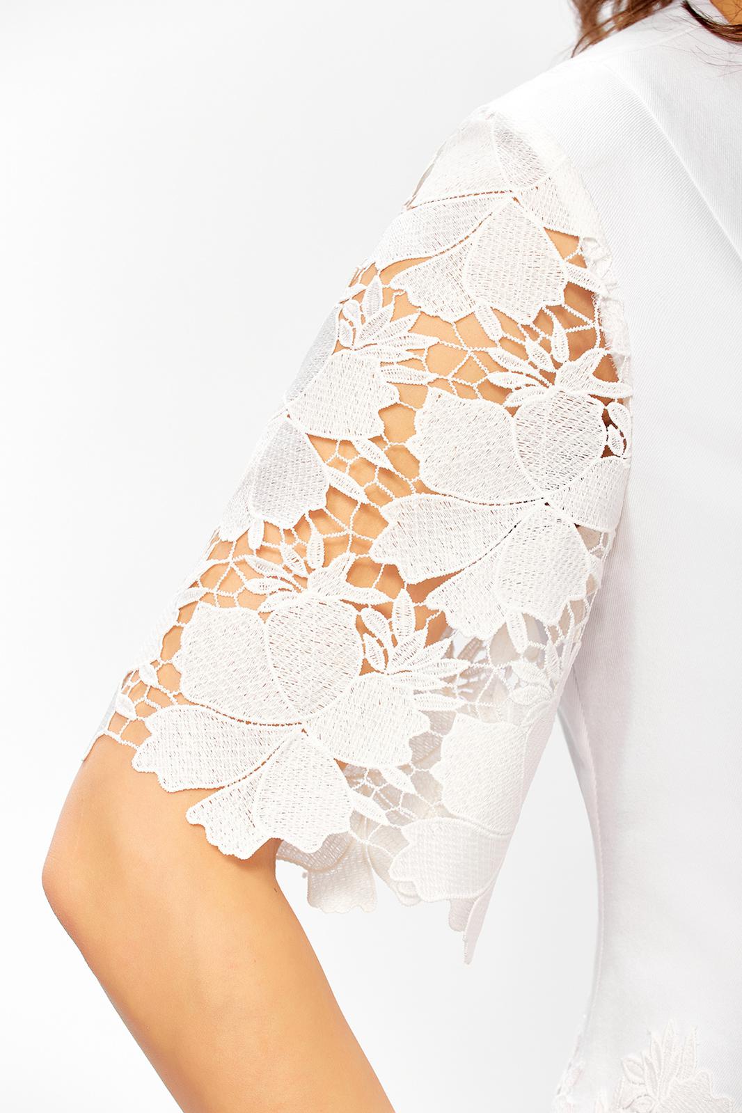 Женский костюм полу-прилегающего силуэта, выполнен из джинса и кружева, состоит из жакета и юбки. Жакет прилегающего силуэта, выполнен из джинса, застежка по переду на петли пуговицы. Вырез горловины V-образной формы, по переду также выполнены рельефы, а по низу жакета настрочено кружево. Рукав втачной, оптимальной длины из кружева. Спинка идентична переду, с кружевом по низу. Стильный комплект универсален в своем использовании, подойдёт как на праздник, так и на каждый день.