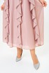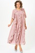 Эффектное платье для обладательниц роскошных форм, свободного покроя, выполнено из шифона, на трикотажной подкладке. Горловина платья округлой формы, на обтачке, на переднем полотнище выполнены вертикальные подрезы с воланами. Спинка со средним швом, рукав покроя реглан, расклешенного покроя, по горловине декор в виде съемного цветка. Легкое, нарядное платье отличный вариант для любительниц комфортных и изящных нарядов!