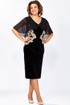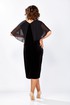 Женское платье полу-прилегающего силуэта, выполнено из велюра и шифона, в качестве отделки кружево. Полочка с горловиной V-образной формы на обтачке, по линии талии выполнены подрезы, декорированные аппликацией из кружева. Спинка выполнена из велюра, с вытачками, в горловину втачена накидка из шифона переходящая с полочки на спинку, на полочке перемычка из шифона, декорирована стразами. Нарядное платье с эффектным декором отлично подчеркнет линию талии и будет уместно на любом мероприятии!