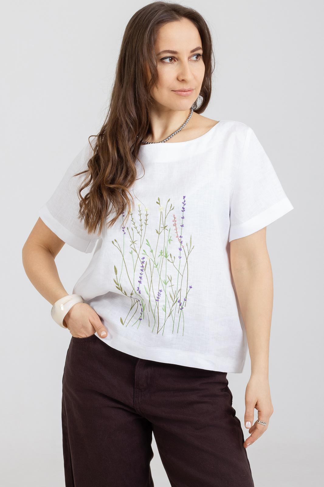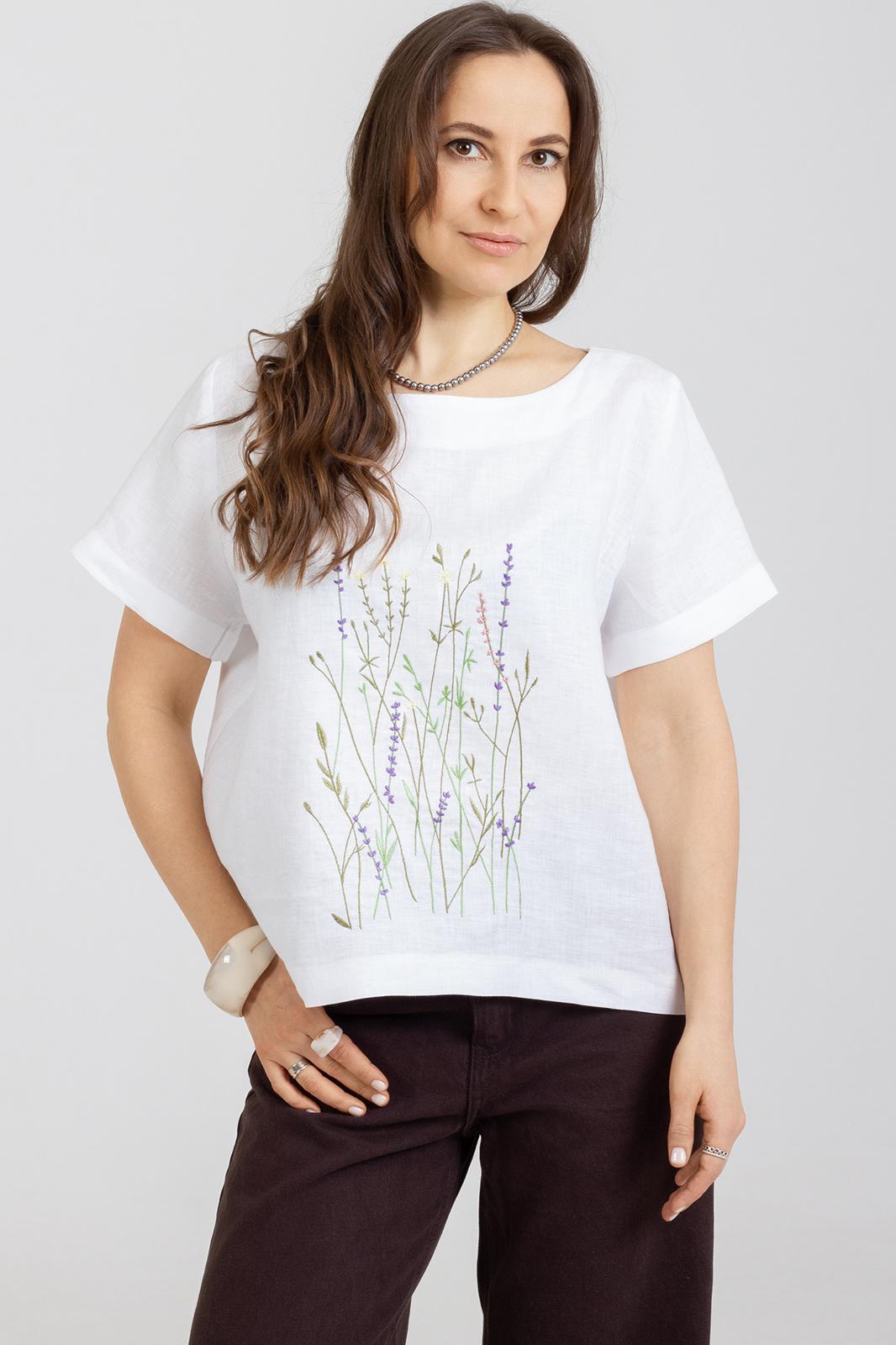 Летняя Блузка с вышивкой по переду из натурального мягкого льна с эффектом мятости свободного силуэта. Рукав втачной .