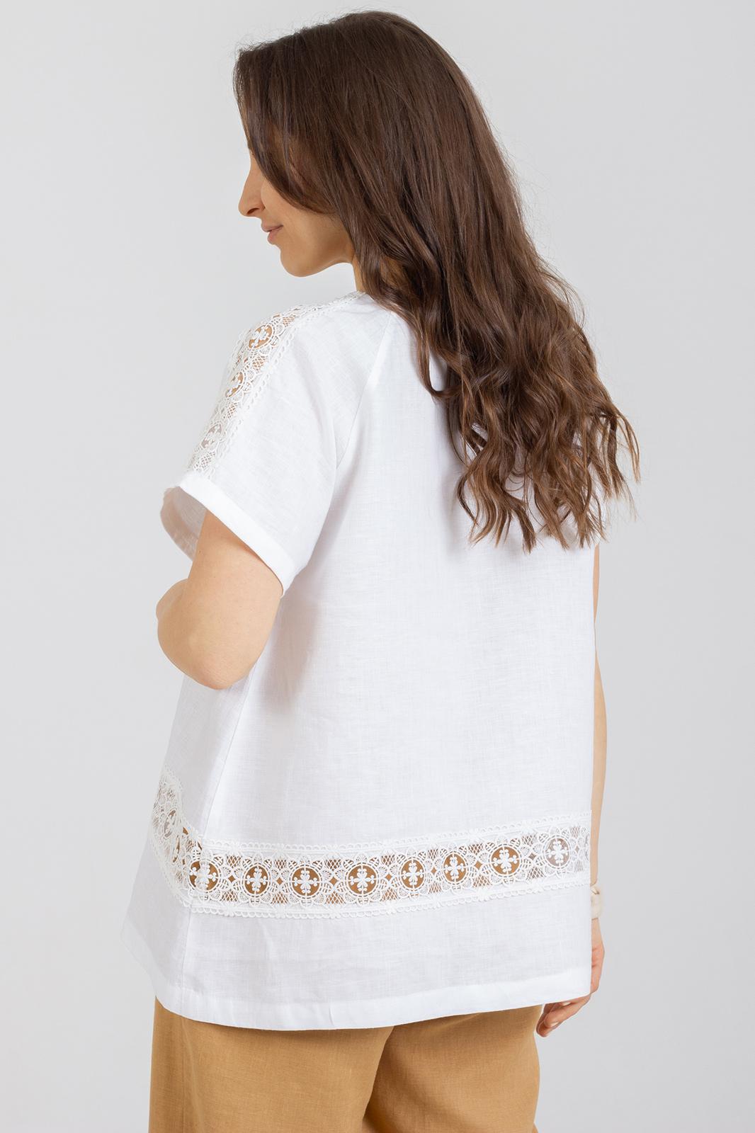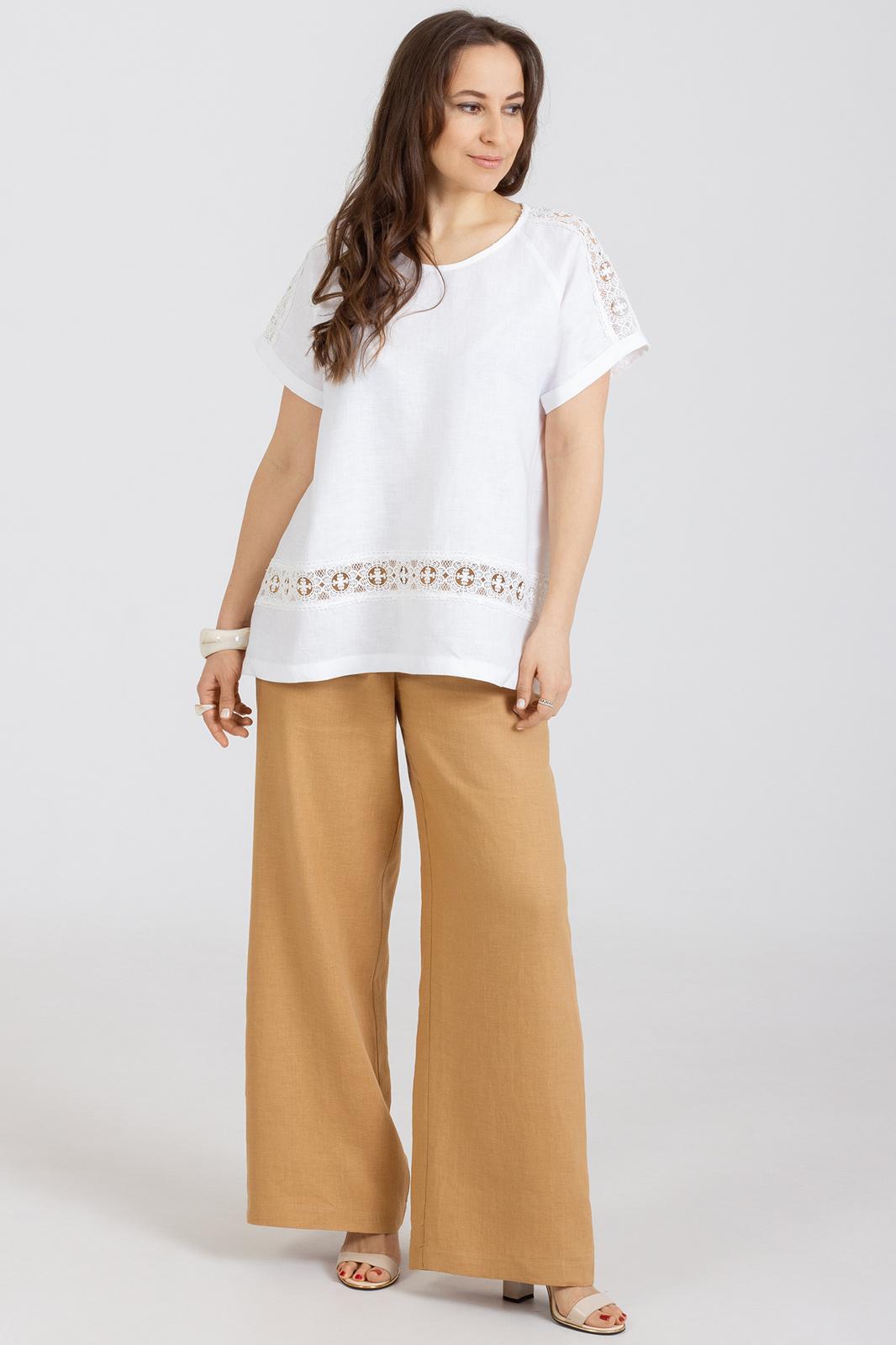 Туника изготовлена из качественного натурального мягкого льна с эффектом мятости свободного силуэта с рукавом -реглан.Горловина окантована. По низу изделия и по рукаву- отделка тесьма-шитьё из хлопка.