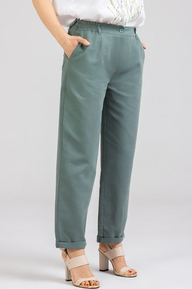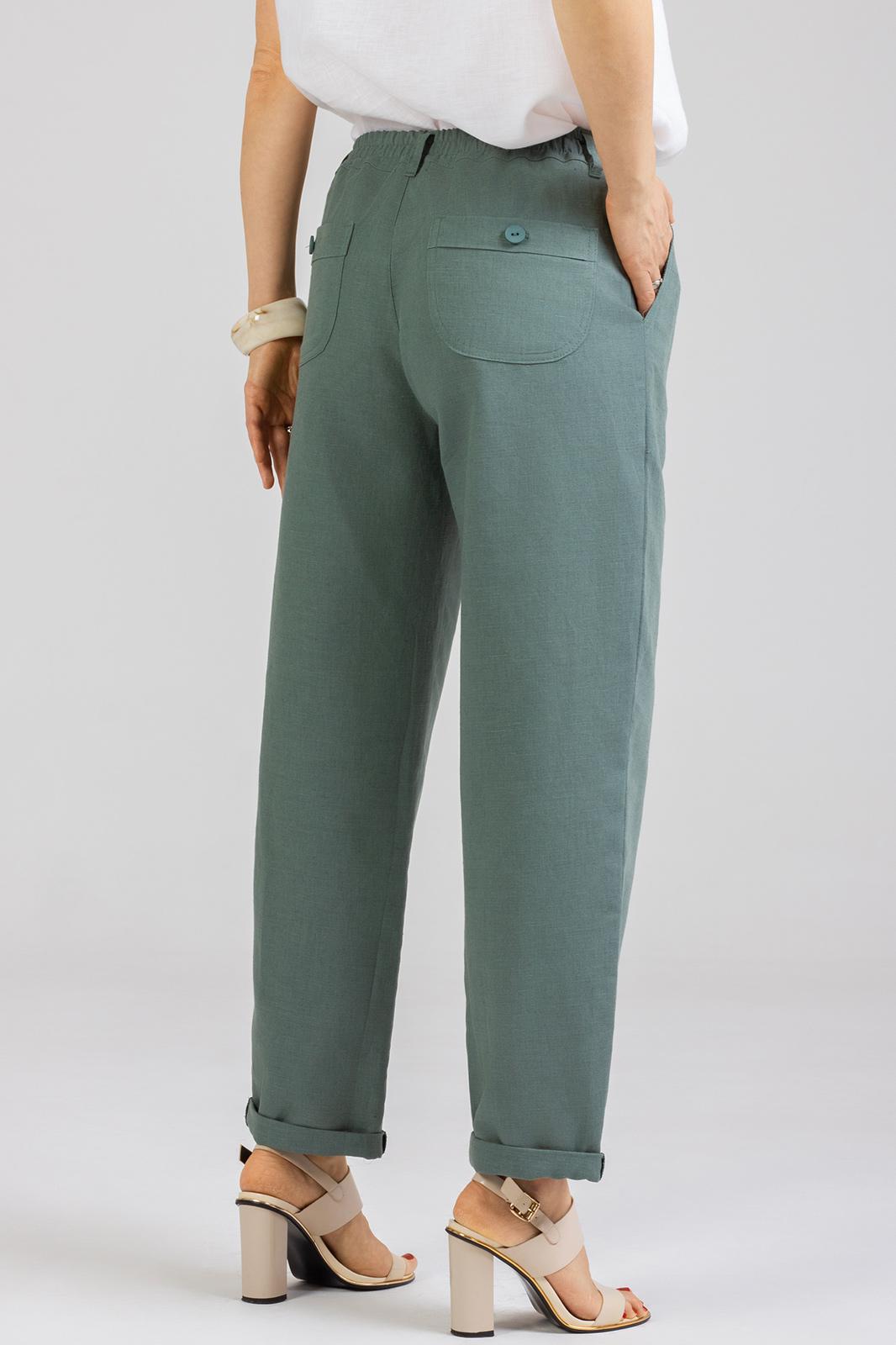 Стильные Брюки -Бананы изготовлены из качественного льна с эффектом мятости. Брюки летнего ассортимента, свободные ,застёгиваются на молнию. По переду внутренние карманы. Сзади накладные карманы. Очень удобные. Отворот не закреплён. Подходят как на рост 164, так и на рост 170. Застёгиваются на молнию и 2 пуговицы. В задней части пояса и частично по переду вставлена резинка. Посадка: средняяДлина брюк по боковому шву с поясом 100-103 см . Длина пояса ( резинка в растянутом виде): 46 р.-82 см, 48 р.-86 см, 50 р.-91 см, 52 р-95 см, 54 р-100 см