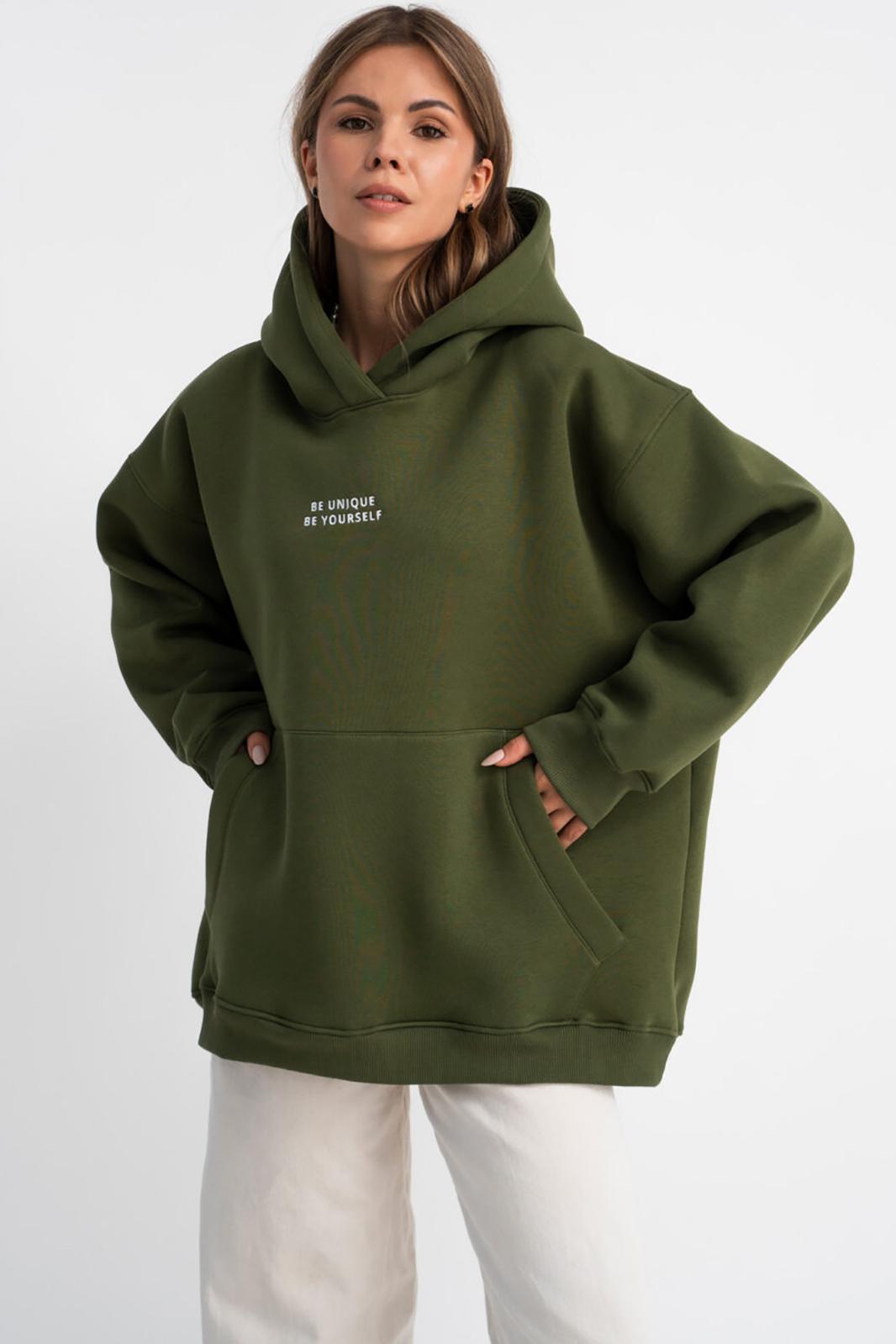 Утеплённый худи изготовлен из качественного турецкого трикотажа. Ткань тёплая и приятная на ощупь , не пилингуется, с изнанки на флизе. Толстовка со спущенной линией плеча, свободного силуэта, с двойным капюшоном, по переду карман по типу “кенгуру”. Крой oversize позволяет чувствовать себя в нем очень комфортно и стильно! Вышивка спереди“Be unique Be yourself” (будь уникальным, будь самим собой) выделяет его среди других и выполнена с особой тщательностью. Мы примерили эту толстовку на самые разные фигуры: от 42 до 56, и она всегда выглядит великолепно.