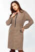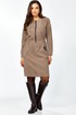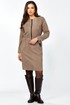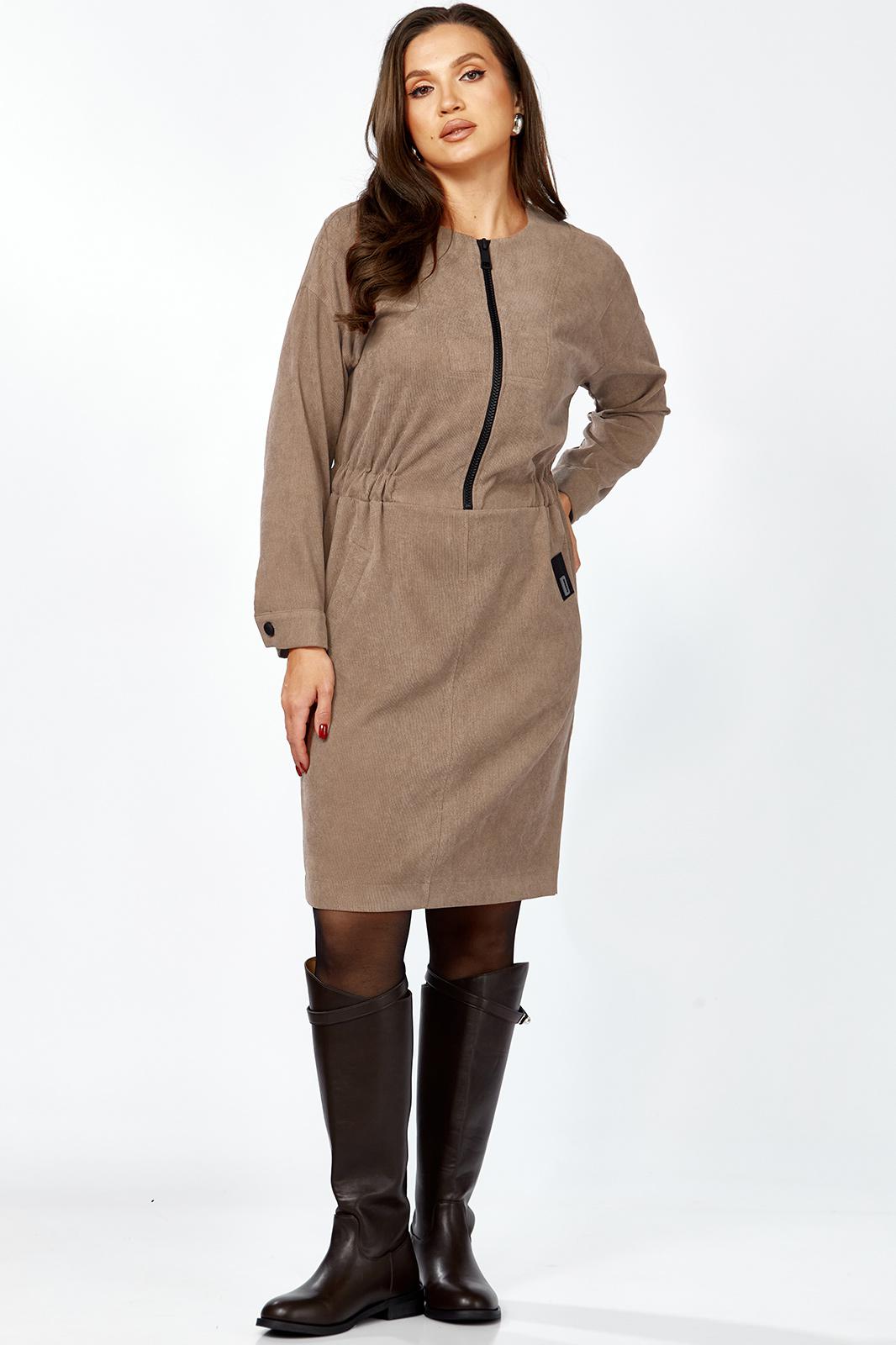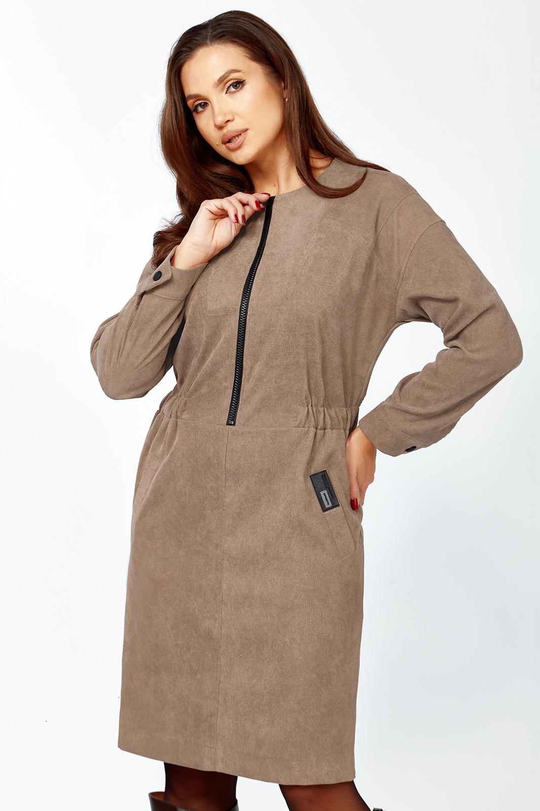 Платье полуприлегающего силуэта из мягкой, комфортной штруксовой ткани. Рукав спущенный, длинный, на манжете с застёжкой на 1 петлю и 1 пуговицу, разрезом. Горловина круглая, застёжка на тесьму-молнию контрастного цвета до талии. По талии подрез, по бокам спереди вставлена резинка, верхняя часть платья имитирует бомбер. Карманы- наклонные листочки, расположены на уровне бёдер по переднему полотнищу юбки, на левой листочке настрочена нашивка контрастного цвета. Перед платья с декоративными подрезами и отстрочкой. Спинка отрезная по талии, на резинке, со средним швом и разрезом по низу.