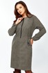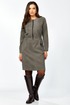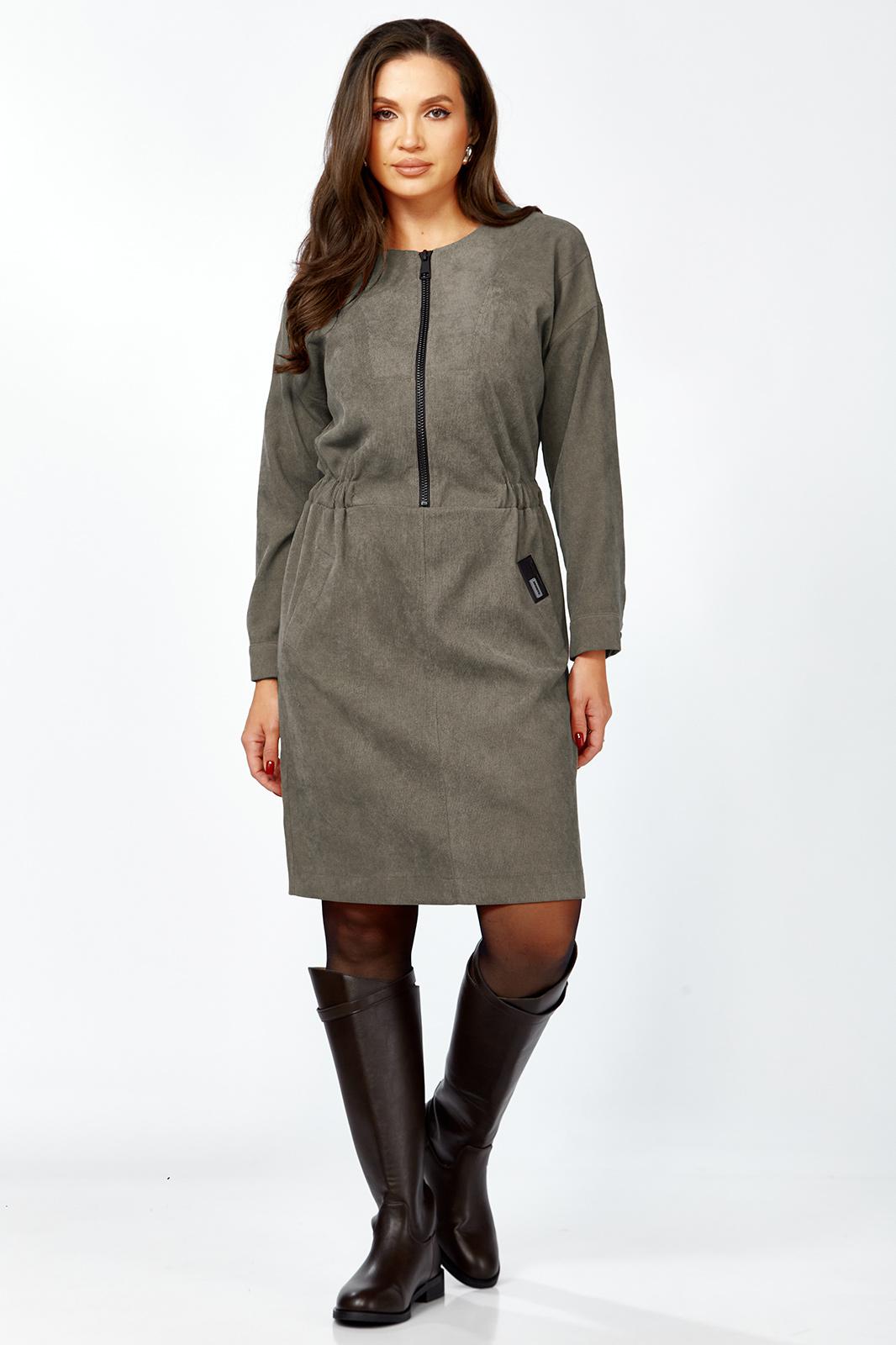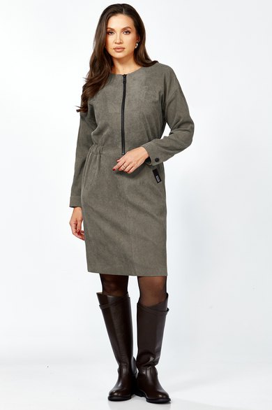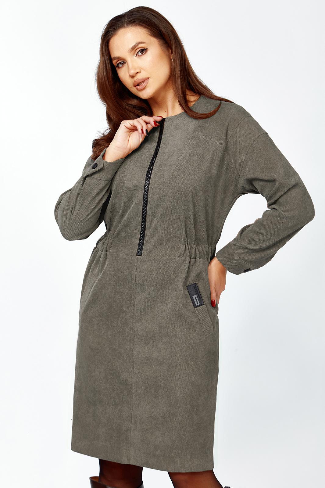 Платье полуприлегающего силуэта из мягкой, комфортной штруксовой ткани. Рукав спущенный, длинный, на манжете с застёжкой на 1 петлю и 1 пуговицу, разрезом. Горловина круглая, застёжка на тесьму-молнию контрастного цвета до талии. По талии подрез, по бокам спереди вставлена резинка, верхняя часть платья имитирует бомбер. Карманы- наклонные листочки, расположены на уровне бёдер по переднему полотнищу юбки, на левой листочке настрочена нашивка контрастного цвета. Перед платья с декоративными подрезами и отстрочкой. Спинка отрезная по талии, на резинке, со средним швом и разрезом по низу.