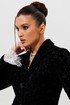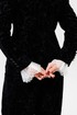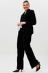 Этот черный бархатный костюм (жакет, манжеты и брюки) — воплощение вечерней элегантности. Комплект из жакета и чуть прямых брюк на подкладке станет основой для безупречного праздничного образа. Жакет с притягивает взгляды и красиво переливается при свете софитов и вечерних огней, делая его идеальным выбором для выхода в ресторан, театр или на новогодний корпоратив. Крой жакета позволяет комбинировать его с брюками и юбками с высокой талией, визуально вытягивая силуэт. Бархатные брюки (на резинке) прямого кроя выгодно оттеняют нарядный верх и обеспечивают комфорт. Такой костюм для праздника можно носить с кружевной или шелковой блузкой, создавая разные стилистические вариации. Этот элегантный костюм подчеркнет ваш безупречный вкус и станет выигрышной инвестицией в гардероб. Дополняют модель кружевные манжеты, которые фиксируются по руке на резинку