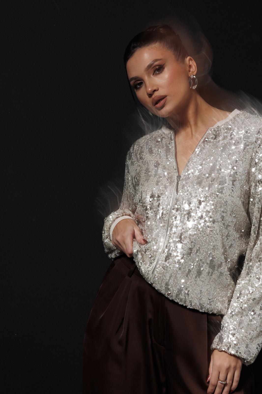 Жакет - бомбер с пайетками (Арт. 1279) создан для смелых и стильных образов. Куртка полностью покрыта мерцающими пайетками, которые создают неповторимый блестящий эффект при каждом движении. Жакет с пайетками отлично сочетается с коктейльными платьями, базовыми топами и джинсами, позволяя создавать как дерзкие, так и элегантные луки. Эта пайеточная куртка станет главным акцентом вашего наряда для вечеринки, посещения клуба или романтического свидания. Размеры 48-54.