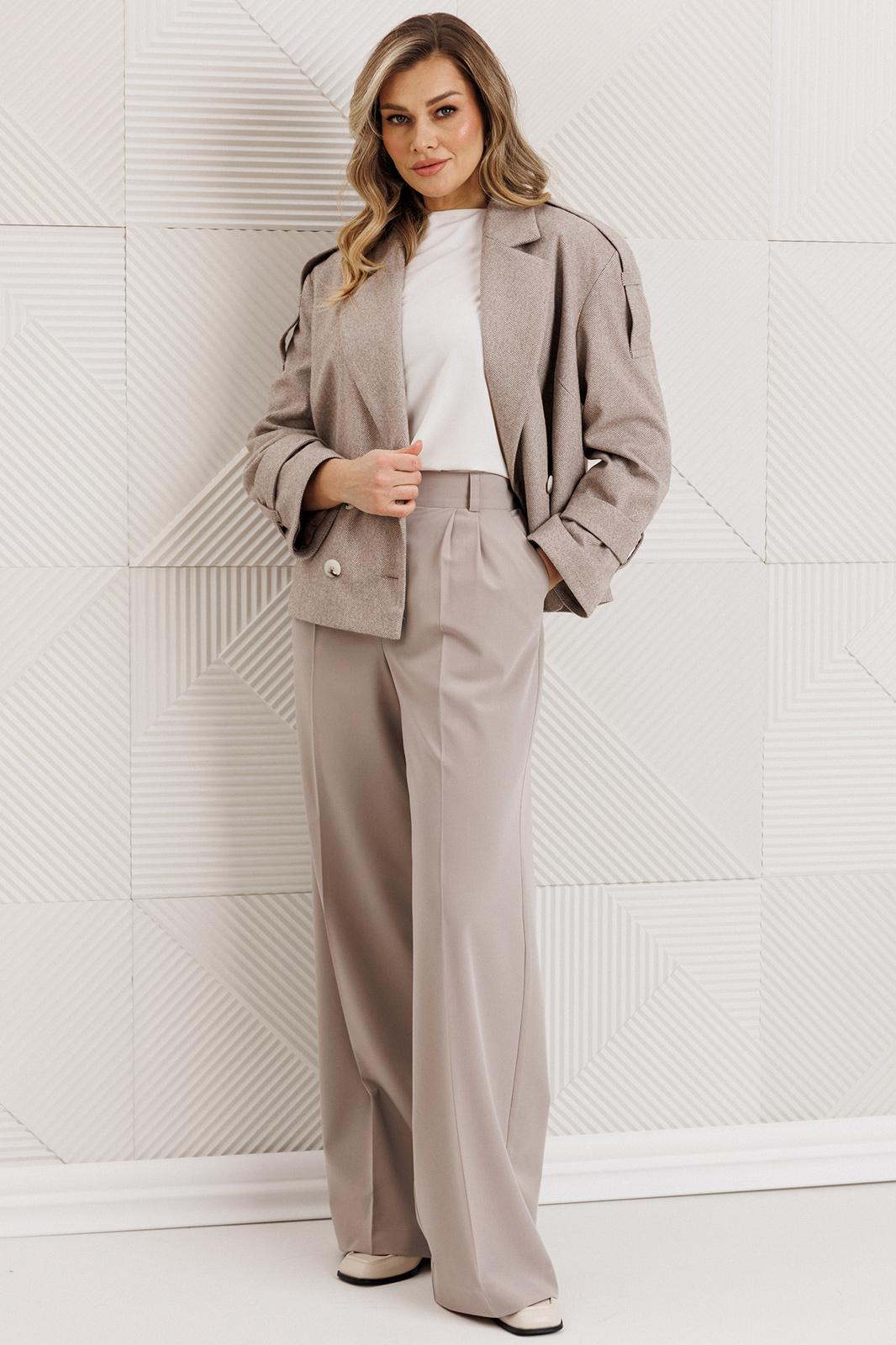 - Тип ткани: Пальто: п/э 65%, високза 30%, спандекс 5% Брюки:п/э 65%, вискоза 31%, спандекс 4%