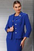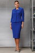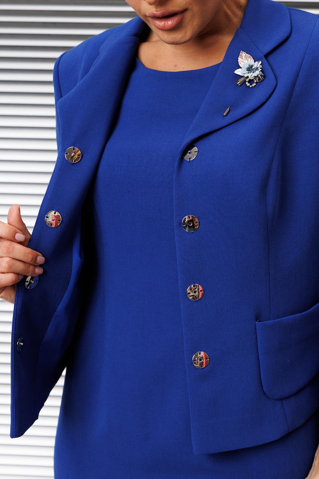Костюм женский, состоящий из платья и жакета. Платье прилегающего силуэта. Спереди с рельефами, переходящими в вытачки. Спинка со средним швом, переходящим в шлицу. Рукав одношовный втачной. Горловина платья обработана подкройной обтачкой. Жакет прилегающего силуэта. По переду жакета рельефы, выходящие из проймы, и накладные карманы. Спинка со средним швом и рельефами. Застежка на декоративные кнопки.