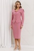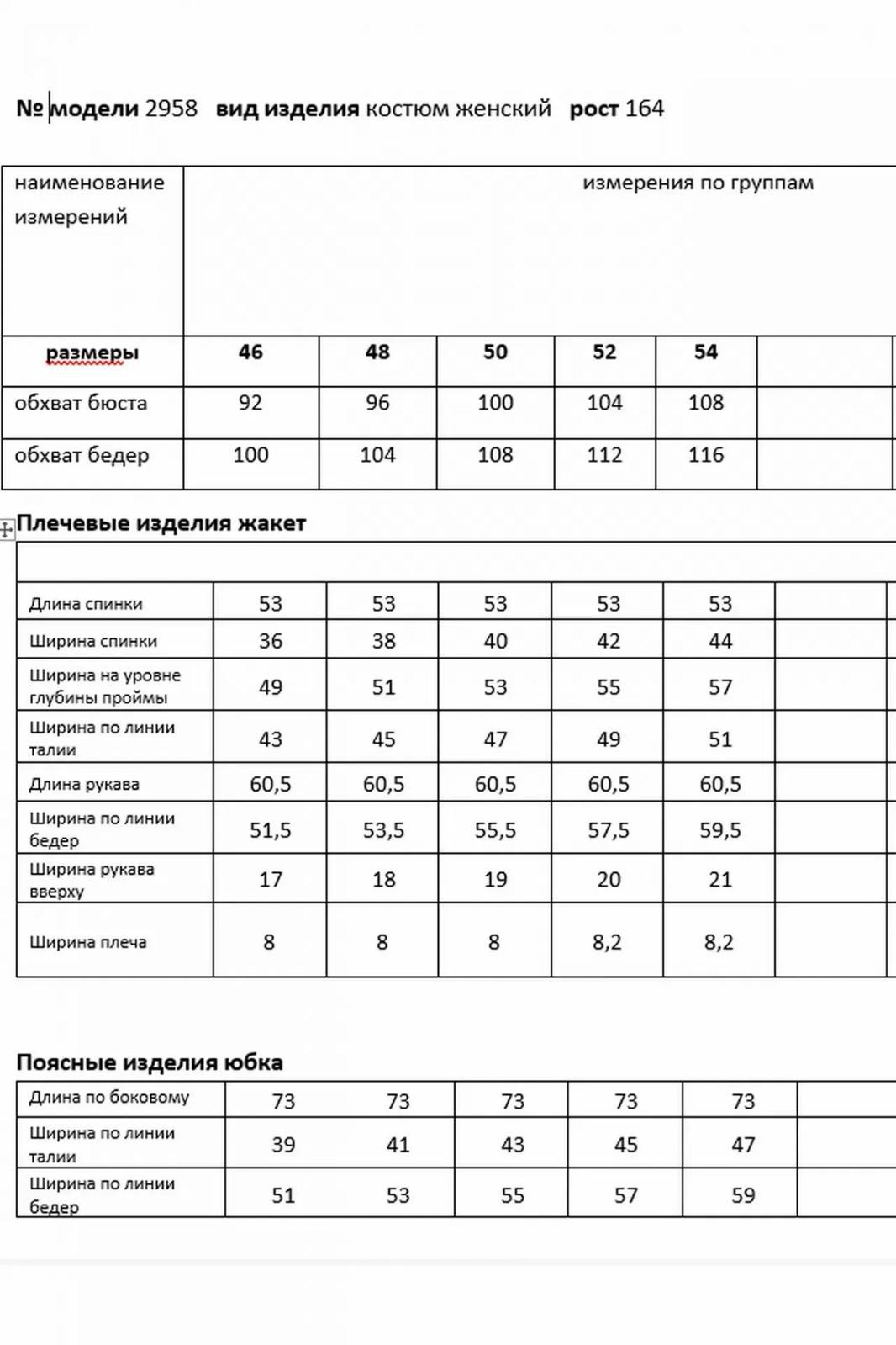 Этот нарядный костюм представляет собой элегантное и утонченное решение для особых случаев. Жакет полуприлегающего силуэта подчеркивает фигуру и обладает стильной центральной застежкой на изысканные пуговицы, что придаёт ему нотку шика. Рельефные линии, идущие от проймы, создают визуальную стройность, а баска по низу. Юбка прямая, зауженная к низу, сверху на притачном поясе. Юбка прямая, зауженная к низу, сверху на притачном поясе. Застежка на тесьму-молнию в среднем шве, который переходит в шлицу. Костюм на подкладке