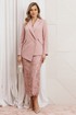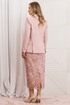 Перед вами нарядный костюм-двойка из новой весенней коллекции — идеальный выбор для деловой женщины, которая ценит строгую классику в сочетании с современным дизайном. Двухпредметный комплект состоит из жакета из костюмной ткани и элегантной юбки из гипюра. Жакет свободного силуэта с воротником пиджачного типа, с двубортной застёжкой на пару пуговиц. Спереди обработаны карманы «в рамку», нагрудные вытачки, бочки фигурной формы, переходящие в клапаны. Низа полочек ассиметричной формы, визуально вытягивающие фигуру. Спинка со средним швом и вертикальными рельефами, идущими от проймы, в которых обработаны шлицы. Рукава двухшовные, со шлицами в локтевых швах на пуговицу. Изделие на подкладке. Удлиненная юбка из о гипюра. Молния и шлица в среднем шве. Юбка на обтачке по талии, на подкладке. Зауженный крой не сковывает шаг, а длина позволяет экспериментировать с верхом - от романтичных блуз до лаконичных кроп-топов. Костюм выполнен в пыльно-розовом и вишневом цетах. Контраст фактур делает образ выразительным, статусным и идеально подходит для торжественных мероприятий, деловых встреч, офиса с дресс-кодом или светских выходов.