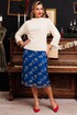 - Тип ткани: Блузон: полиэстер 62%, вискоза 25% , люрекс 3%. Юбка: полиэстер 92%, эластан 5%, люрекс 3%.