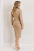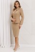 Юбка прямая, зауженная к низу, сверху на притачном поясе. Застежка на тесьму молнию в среднем шве, который переходит в шлицу. Костюм на подкладке.