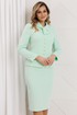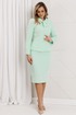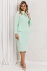 Юбка прямая, зауженная к низу, сверху на притачном поясе. Застежка на тесьму молнию в среднем шве, который переходит в шлицу. Костюм на подкладке.