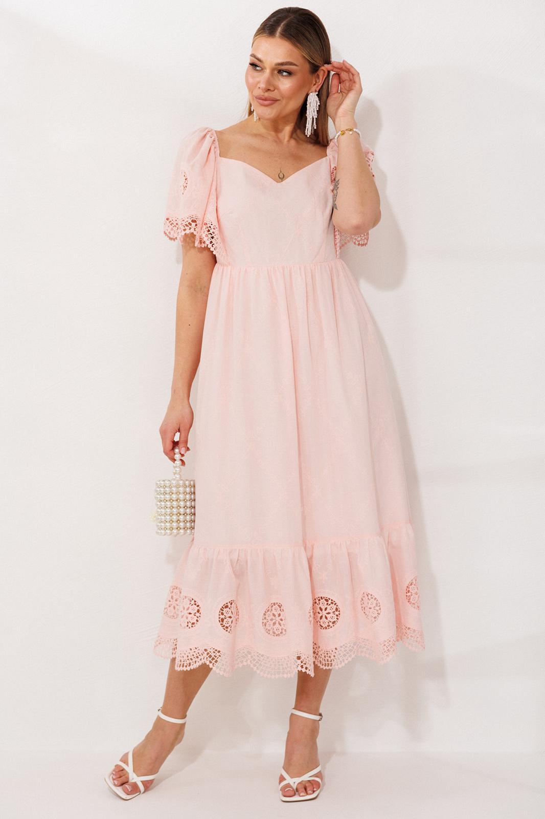 Под всей этой лёгкой конструкцией скрывается нижняя юбка из натурального хлопка: она даёт форме нужный объём, не позволяя основному полотну просвечивать. Мелкие стежки шитья на рукавах и подоле звучат как деликатная ручная работа, превращая простую ткань в историю, которую хочется рассматривать.
