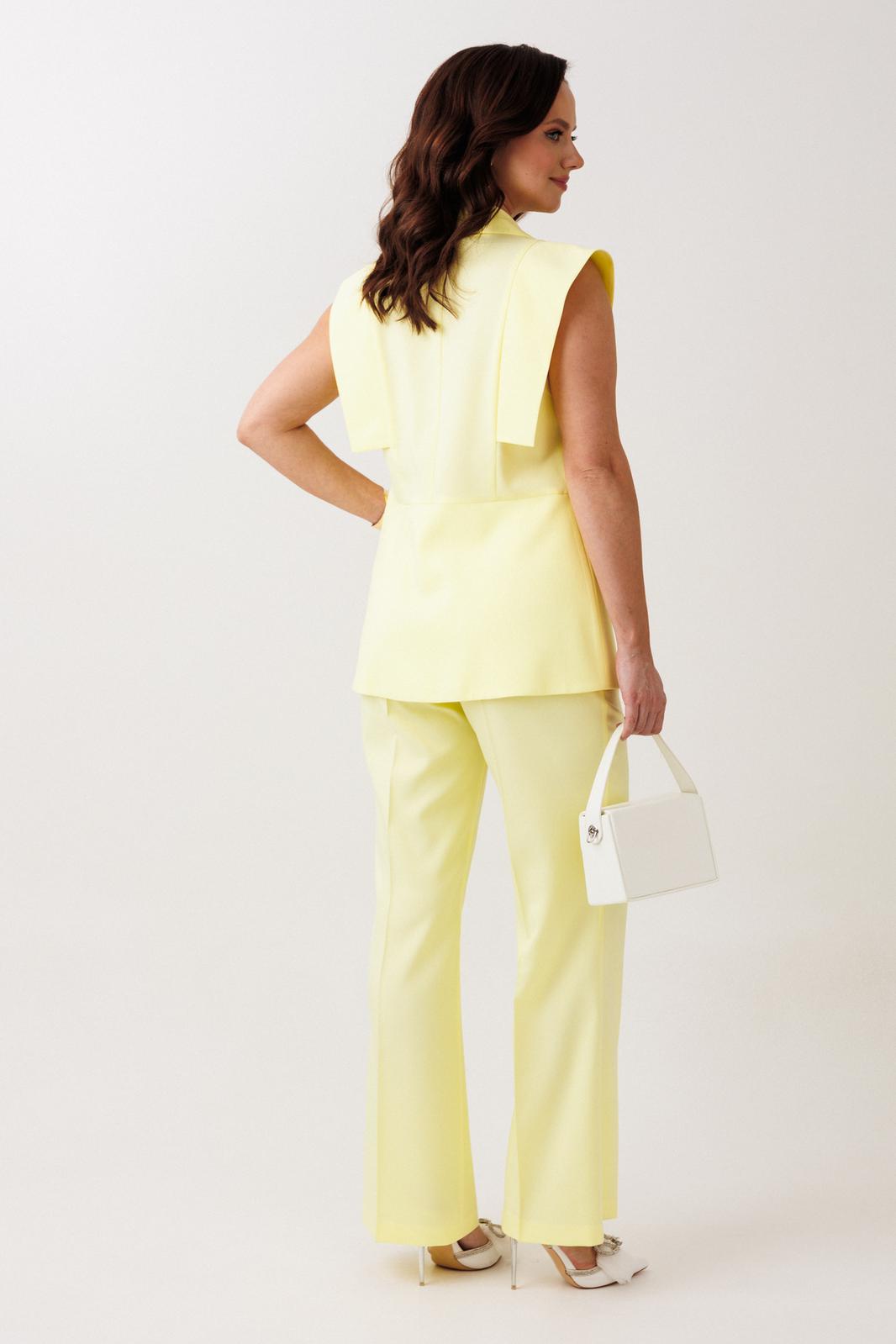 Костюм женский, состоящий из жилета и брюк, выполнен из костюмной ткани, которая немного тянется.