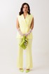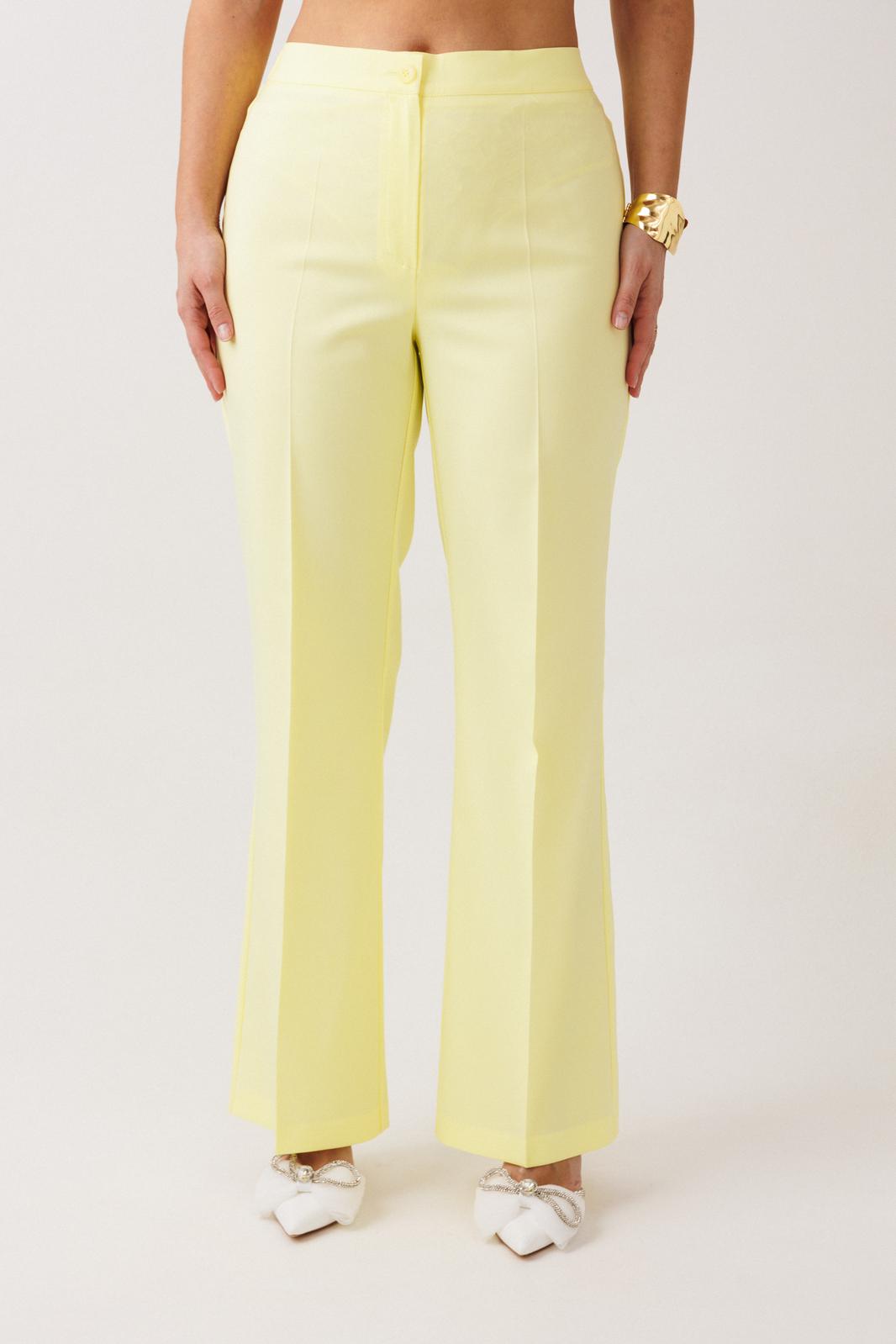 Брюки с высокой посадкой, расширенные от колена к низу. По срезу банта – застежка-молния. Верхний срез оформлен поясом с эластичной резинкой по задней половинке.